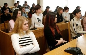 mokyklos dvyliktokų. Jaunuoliams miesto vadovas perskaitė paskaitą apie miesto