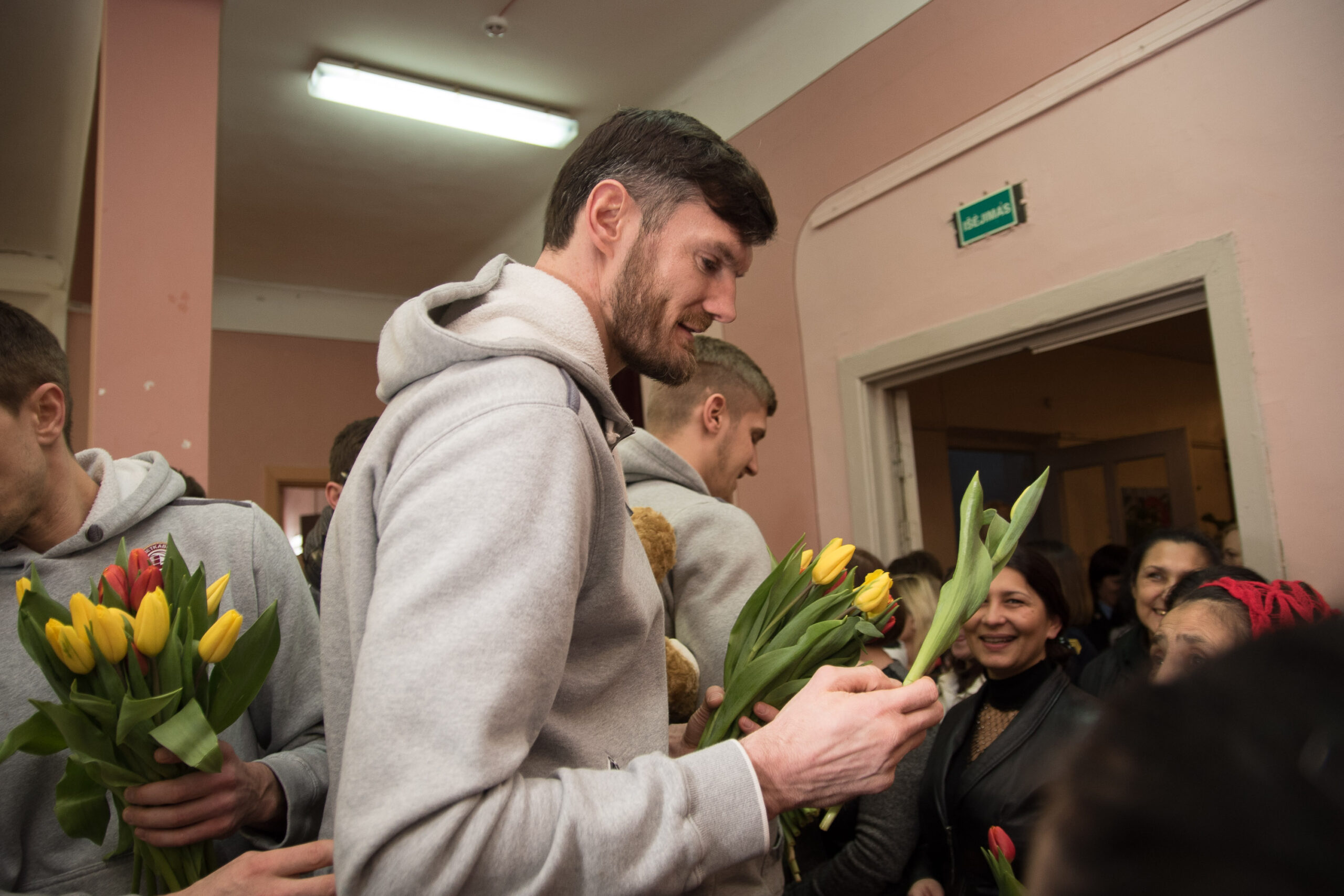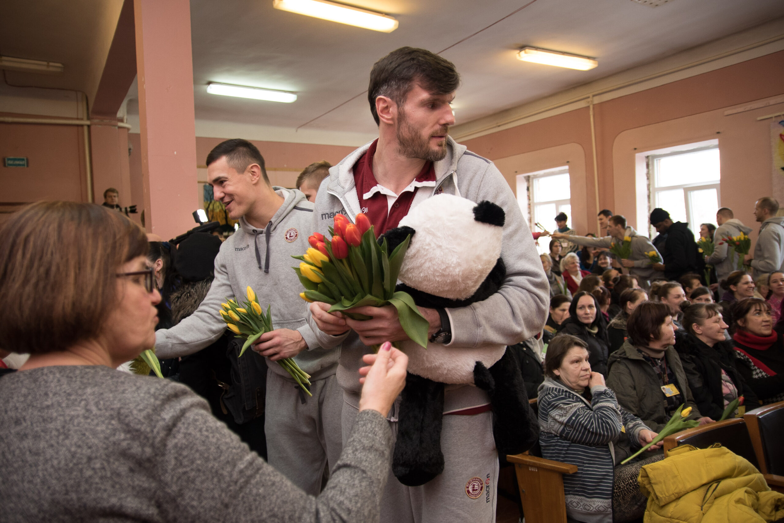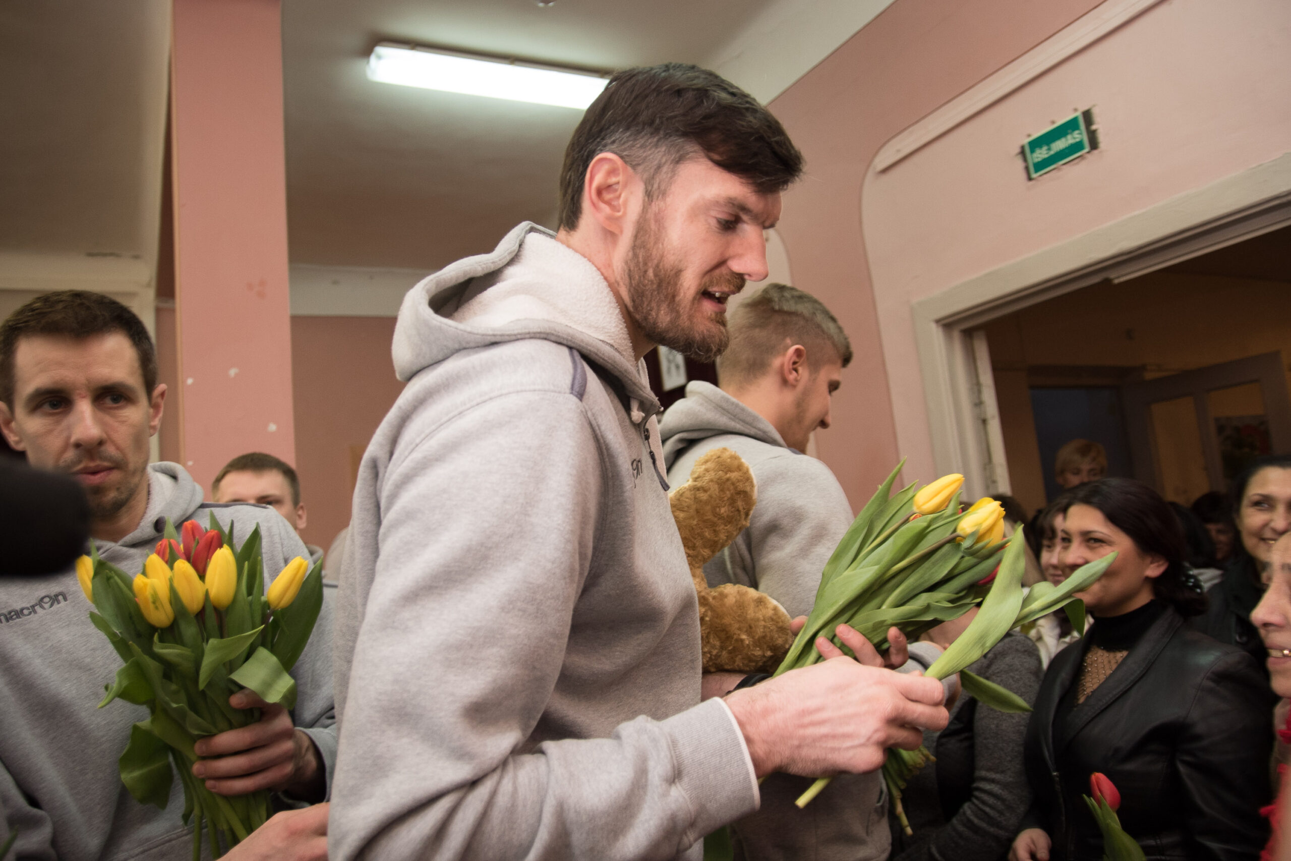 Nuo „Lietkabelio“ trenerių štabo, visų žaidėjų, įskaitant ir brolius Lavrinovičius bei ekipos legionierius, kineziterapeutą, klubo administracijos atstovus – visi atvyko į moterų pataisos namus pasveikinti kalinčias moteris.
