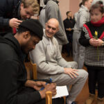 Po šių žodžių krepšininkai pakilo iš pirmų eilių ir drąsiai patraukė link už jų plačių nugarų susėdusių moterų. Kilo malonus šurmulys, kalinės šypsojosi, dėkojo, kalbino krepšininkus.