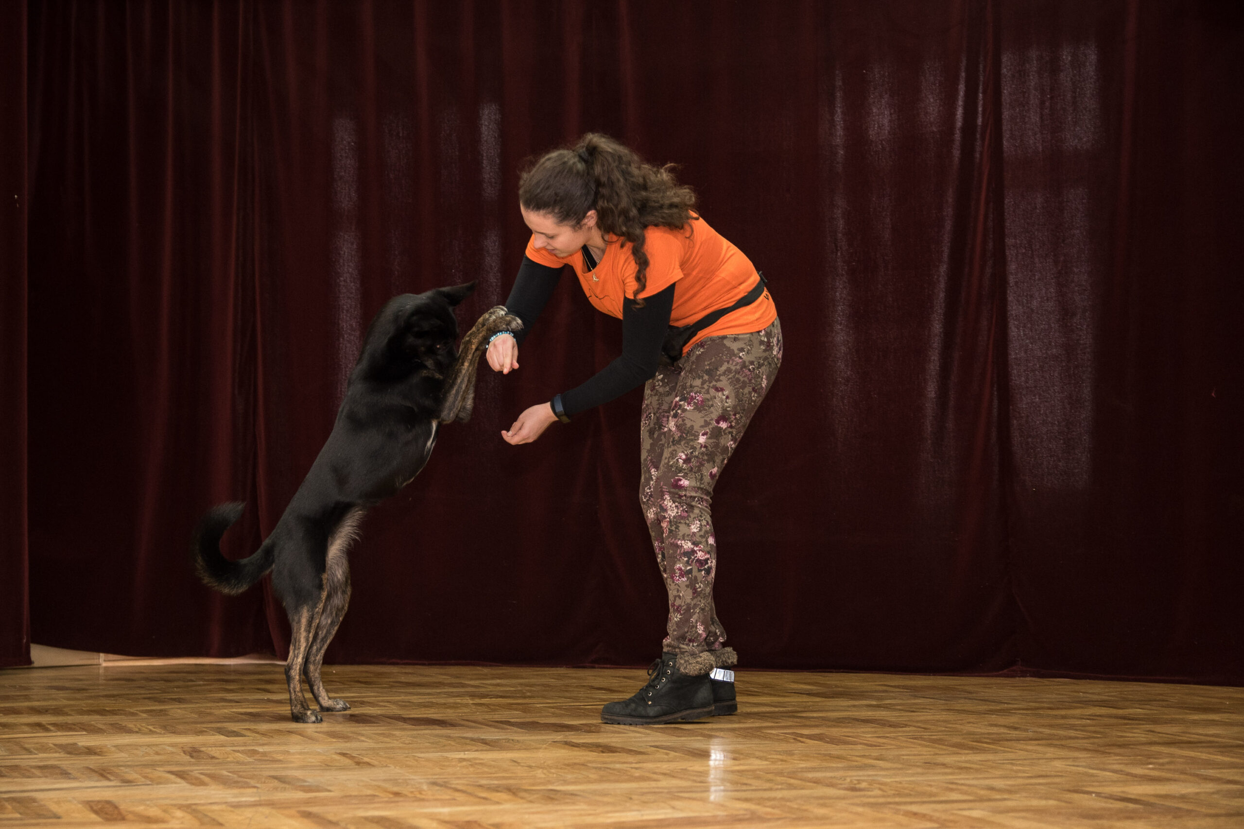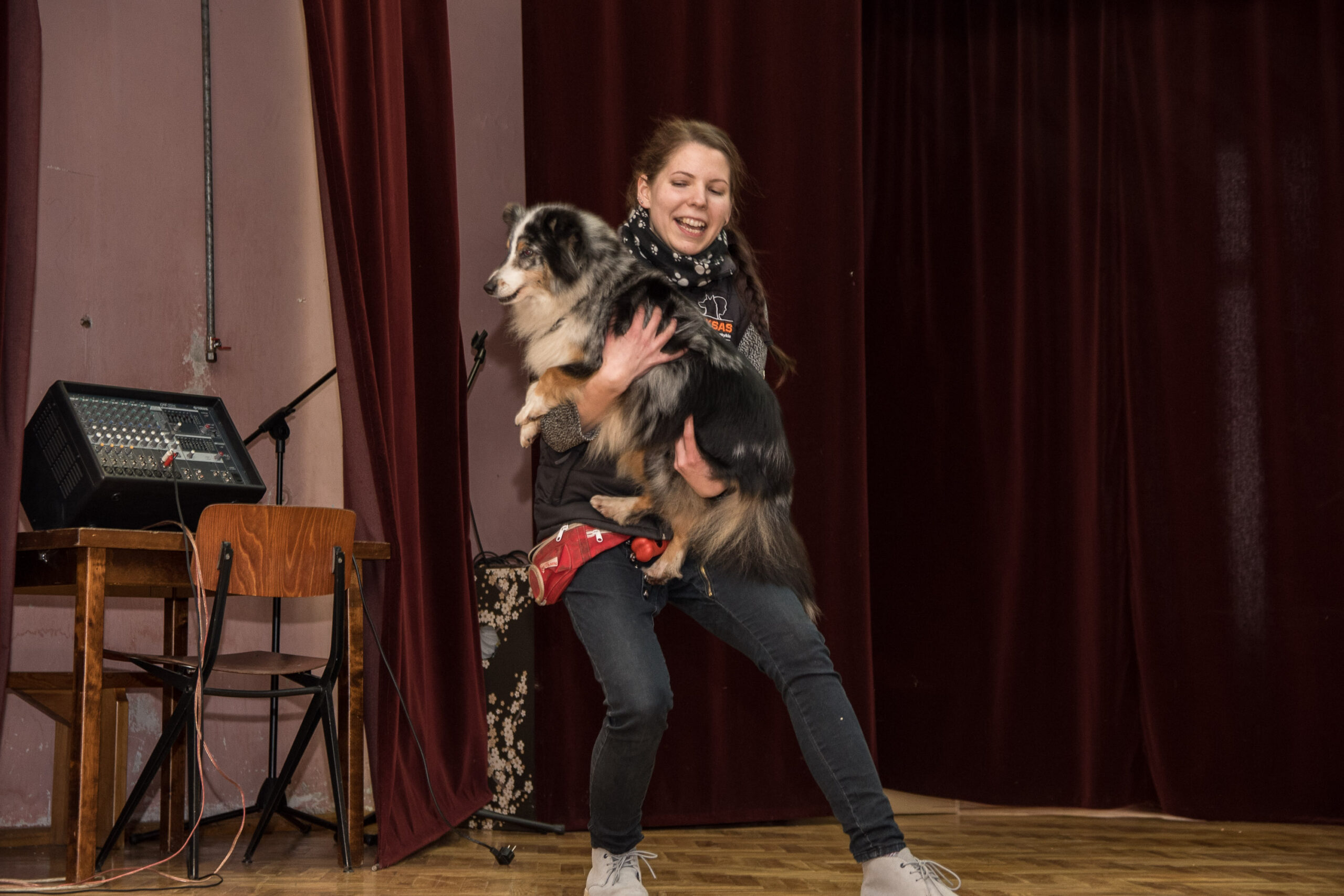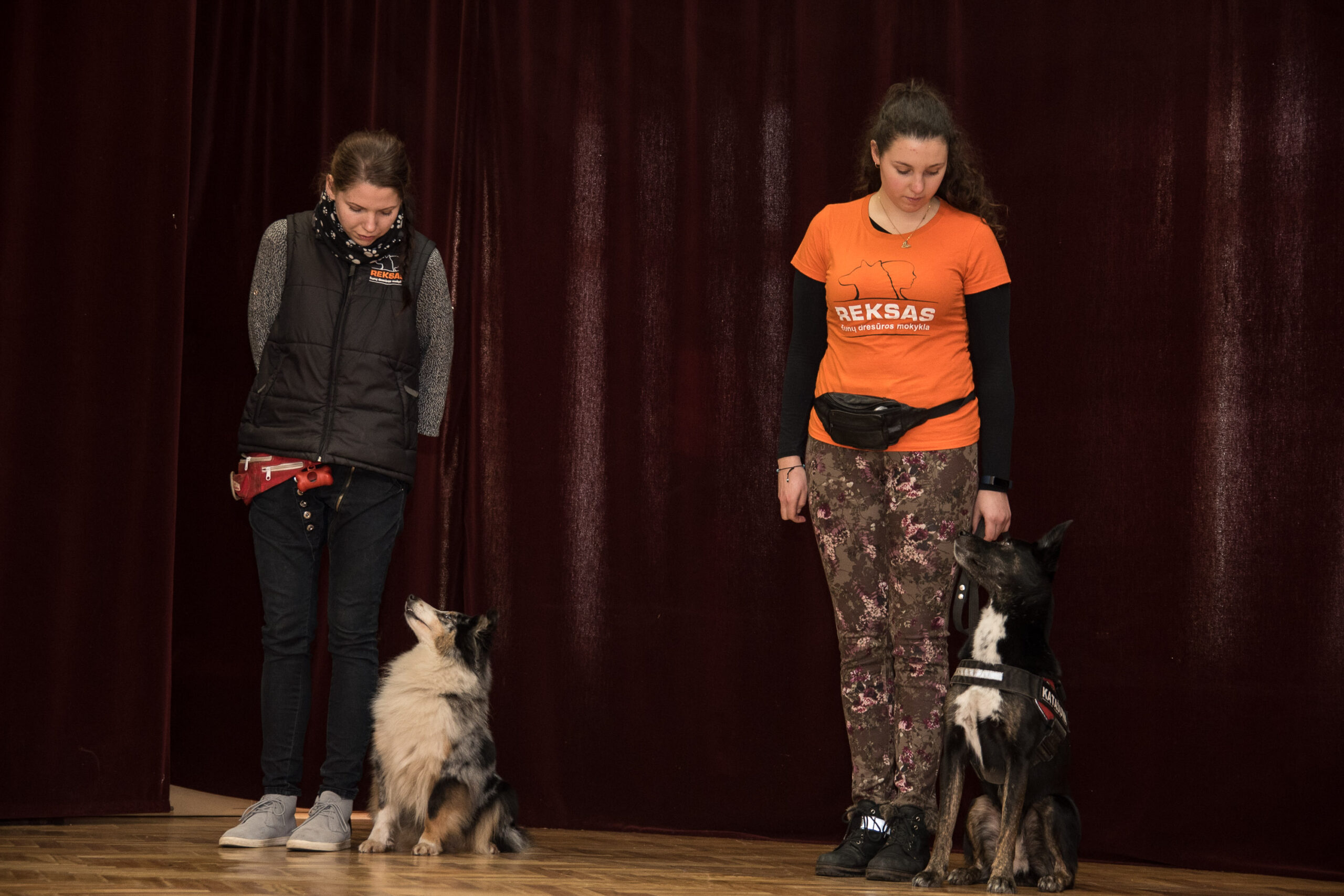 Trys skirtingi šuneliai kartu su savo šeimininkais atliko įvairius triukus, kurie linksmino visus žiūrovus.