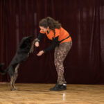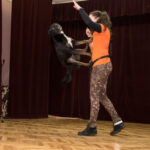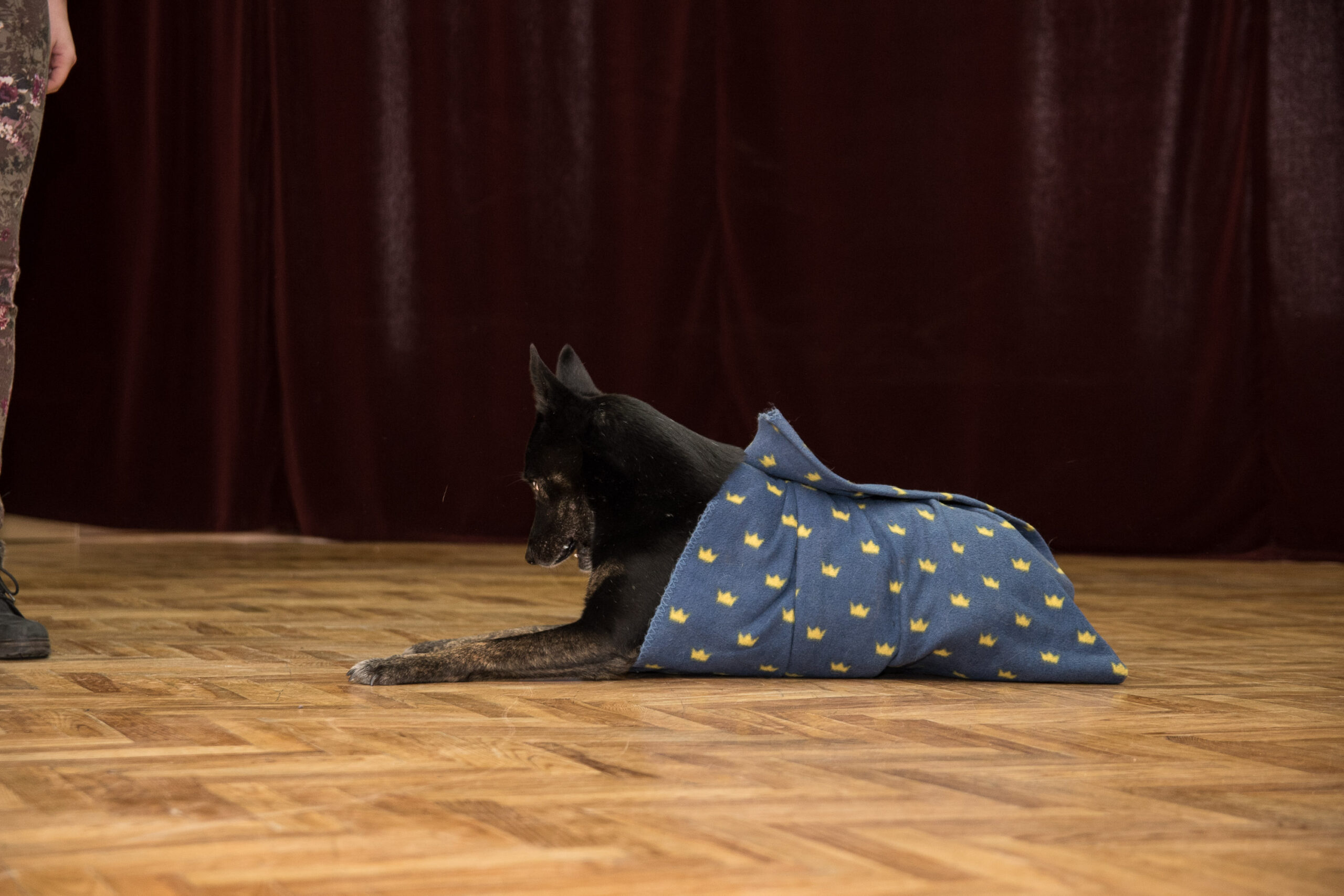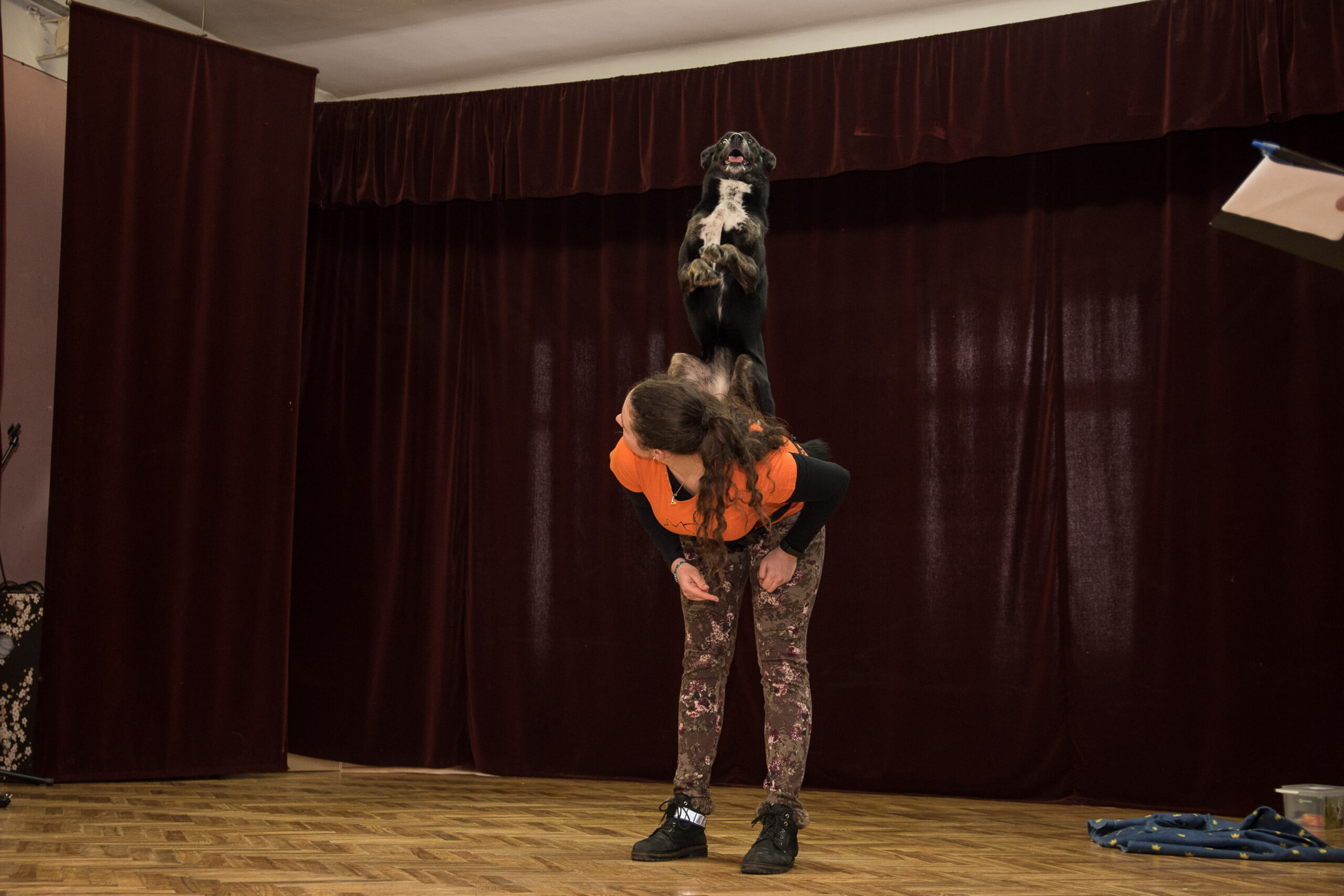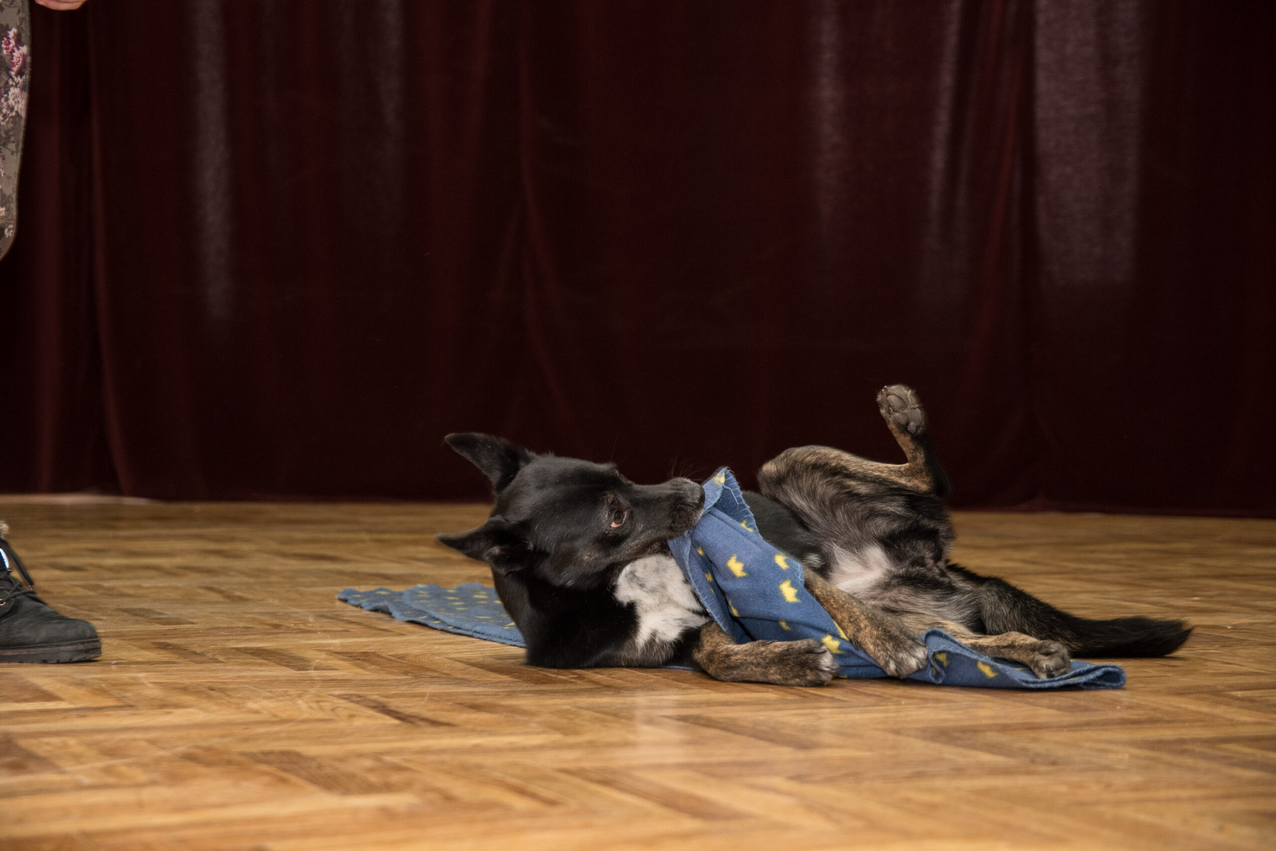 Trys skirtingi šuneliai kartu su savo šeimininkais atliko įvairius triukus, kurie linksmino visus žiūrovus.