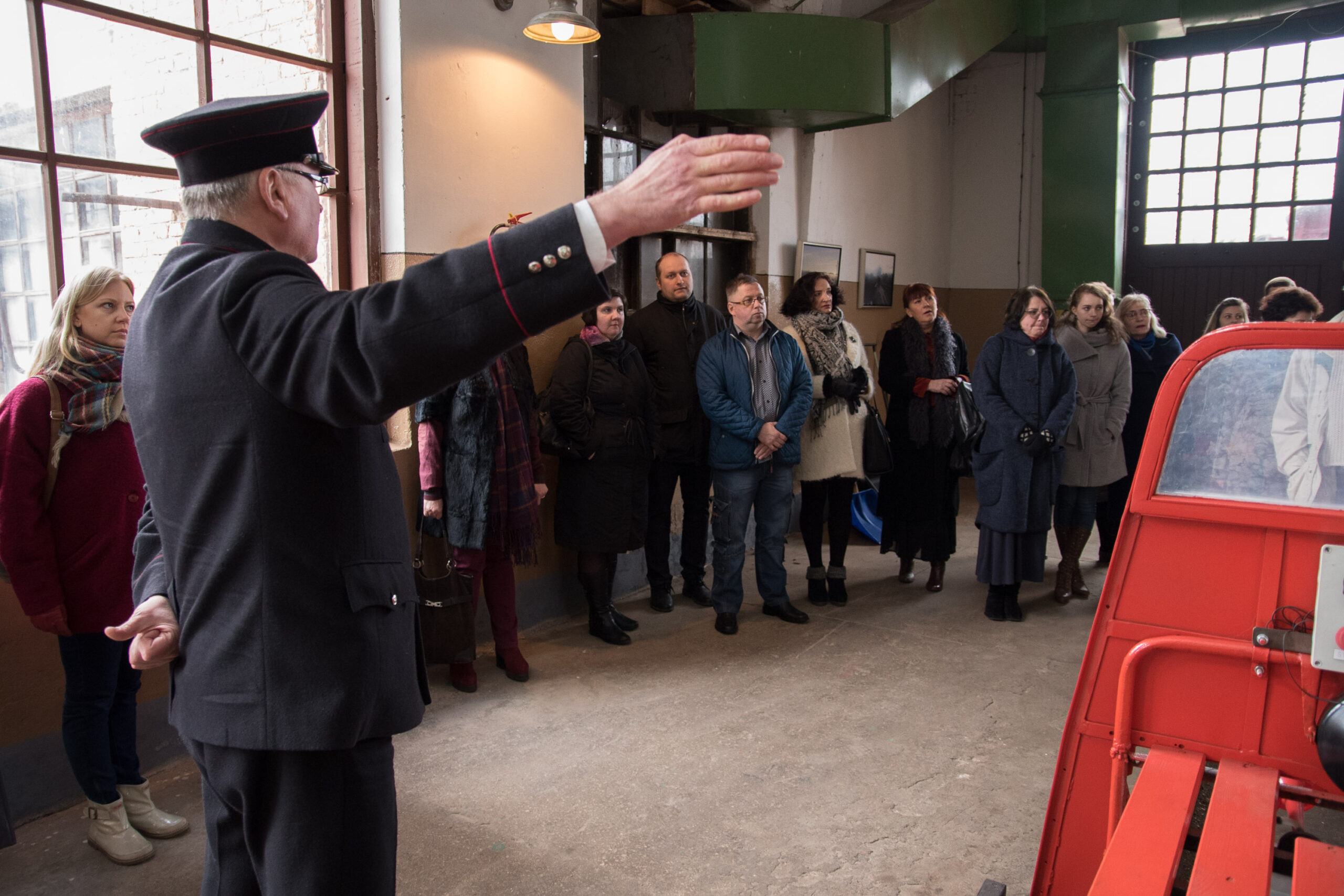 Geležinkeliečio uniforma pasipuošęs Aukštaitijos siaurojo geležinkelio Kelionių organizavimo skyriaus vadovas Gintaras Šileikis supažindino šventės dalyvius su siaurojo geležinkelio istorija, svarbiais įvykiais bei faktais, garvežinėje aprodė techniką.