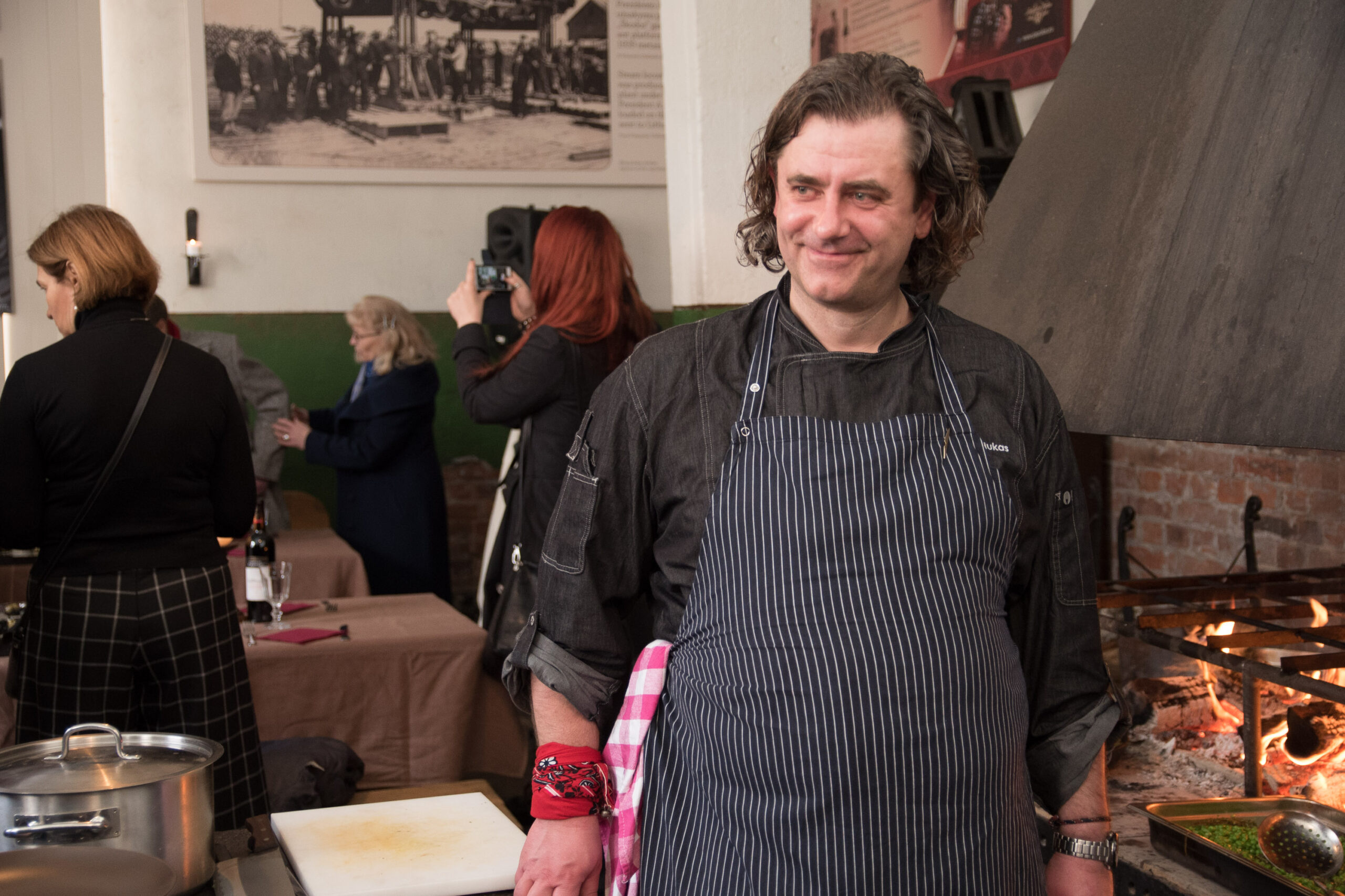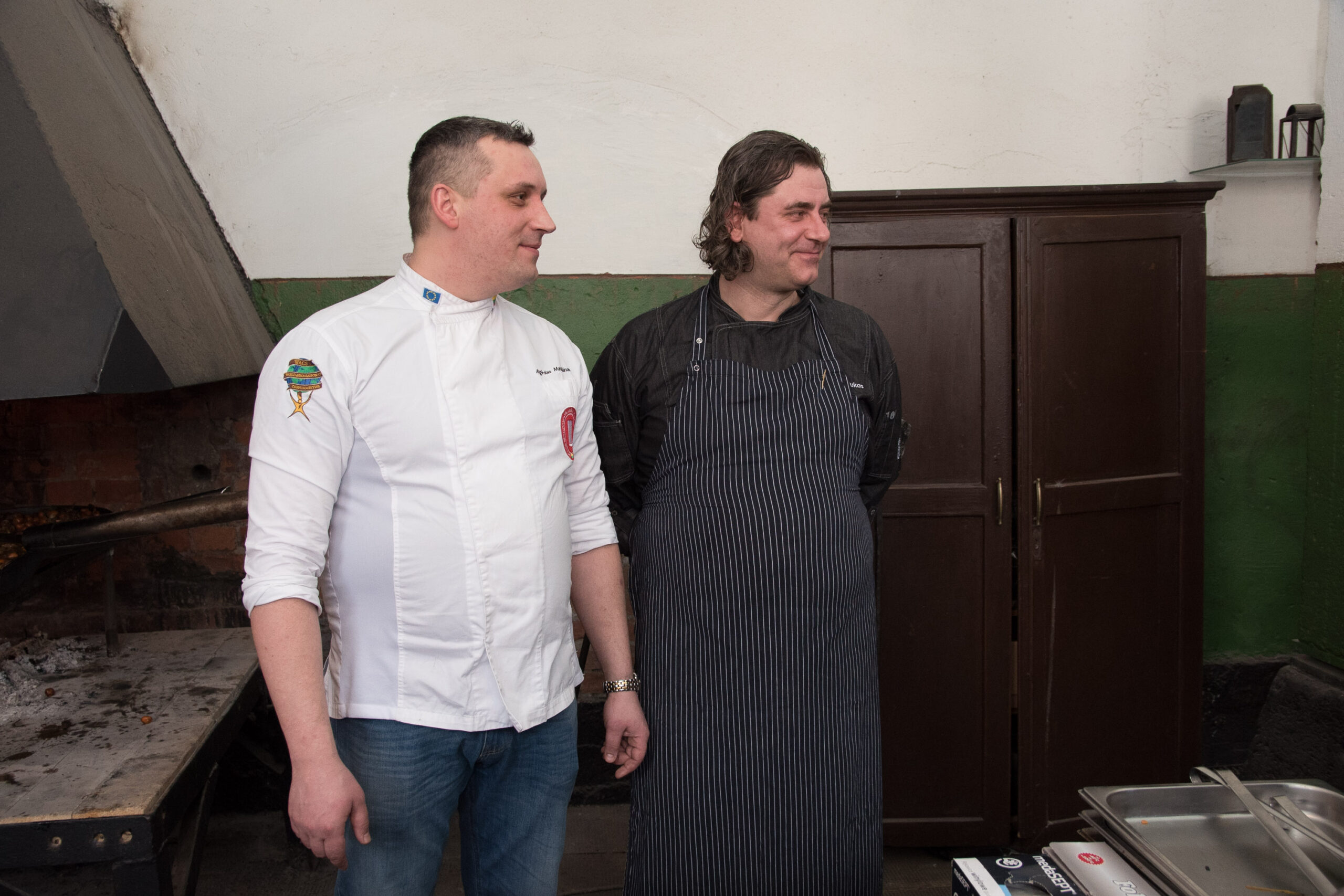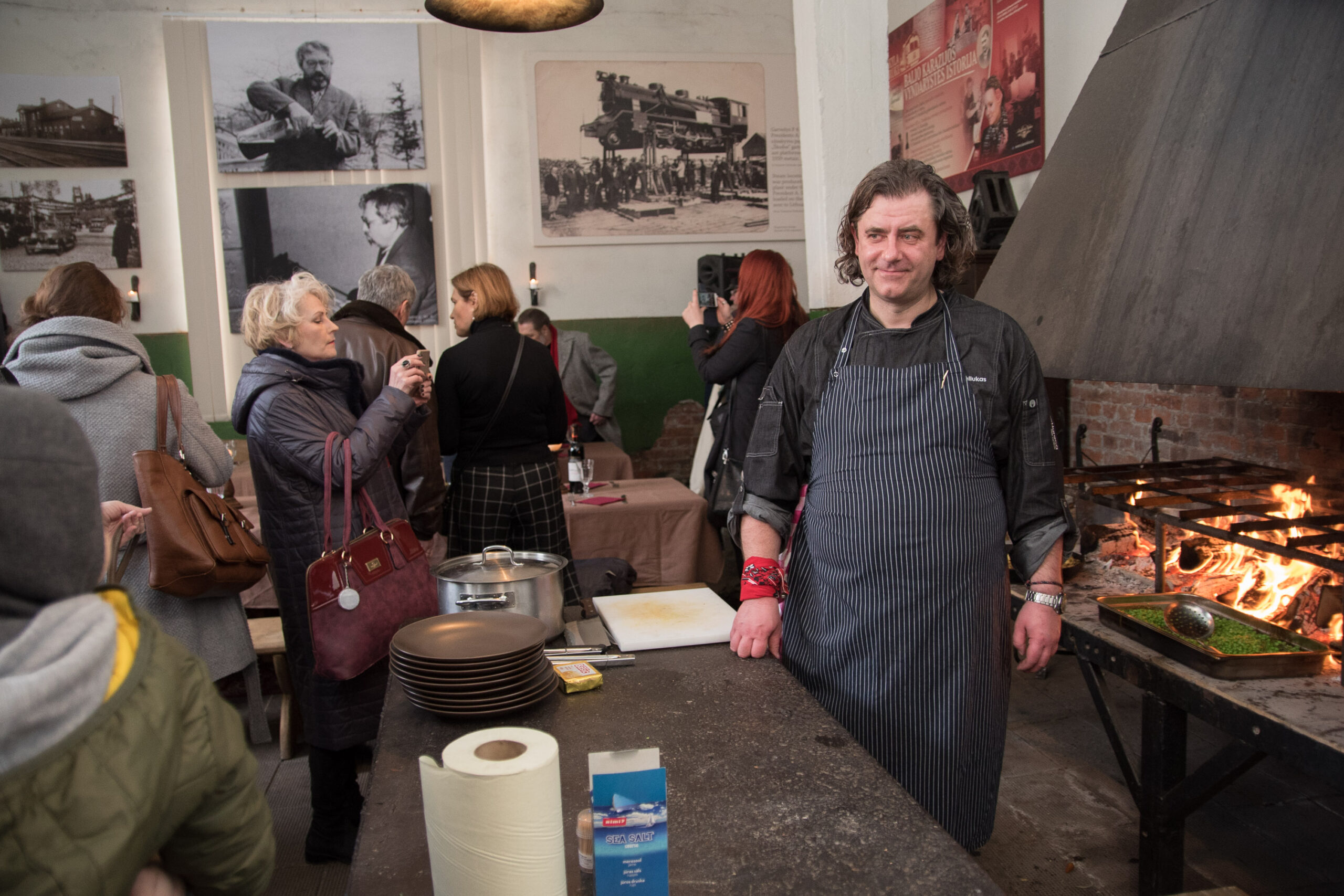 Kalvėje, prie jaukiai besikūrenančios ugnies laukdami svečių sparčiai sukosi virtuvės šefai Evaldas Žaliukas ir Algirdas Matačiūnas.