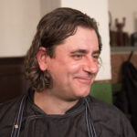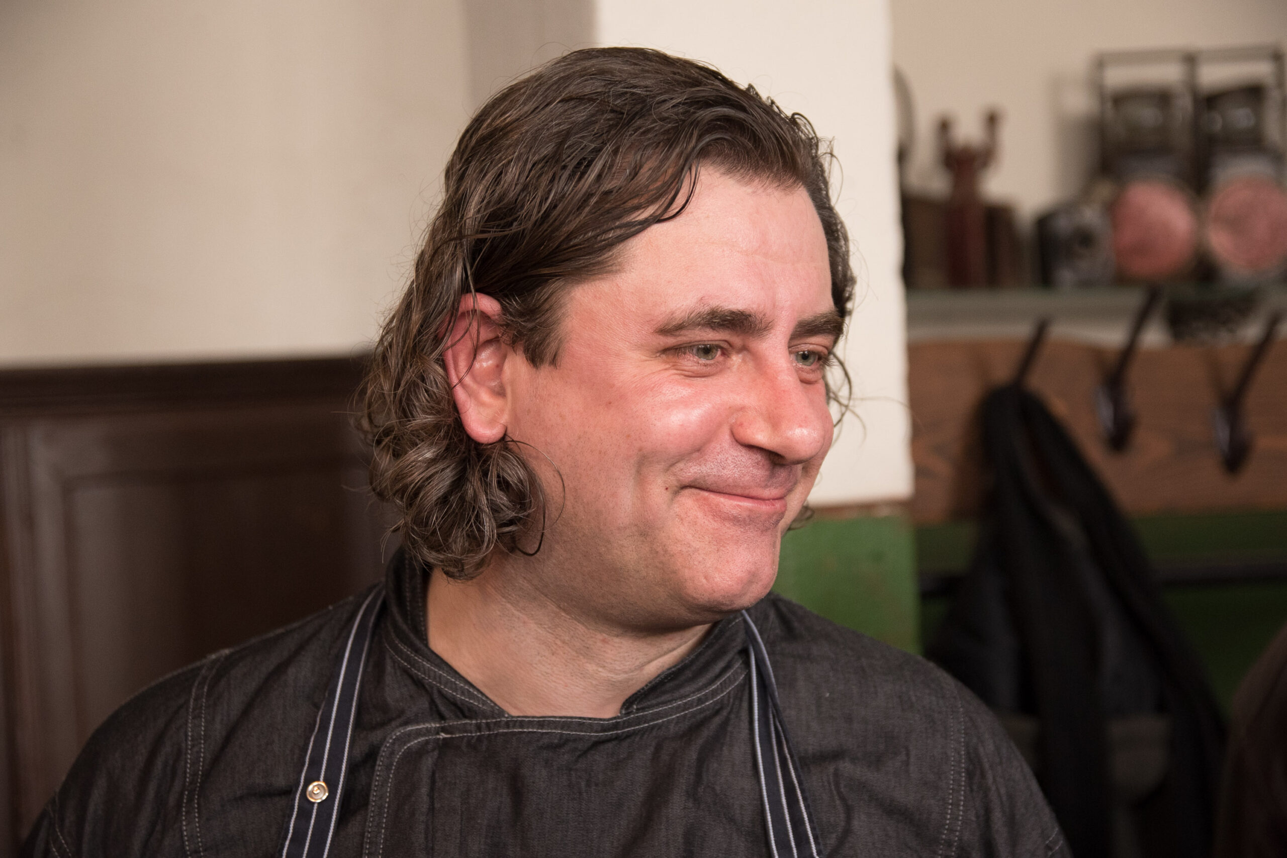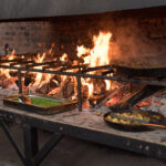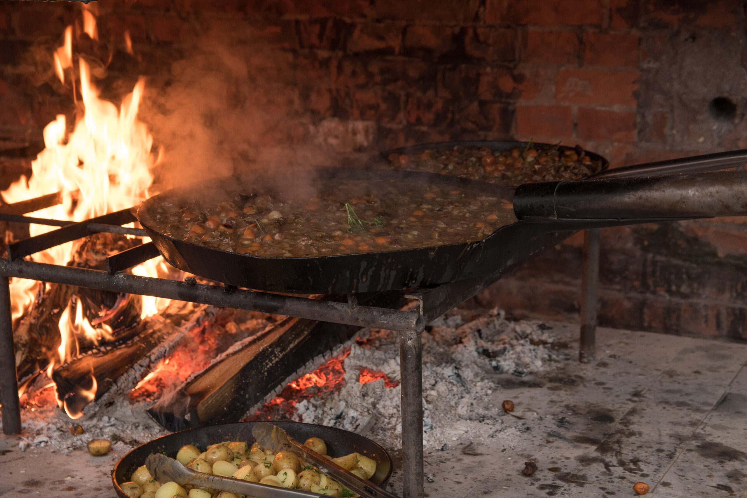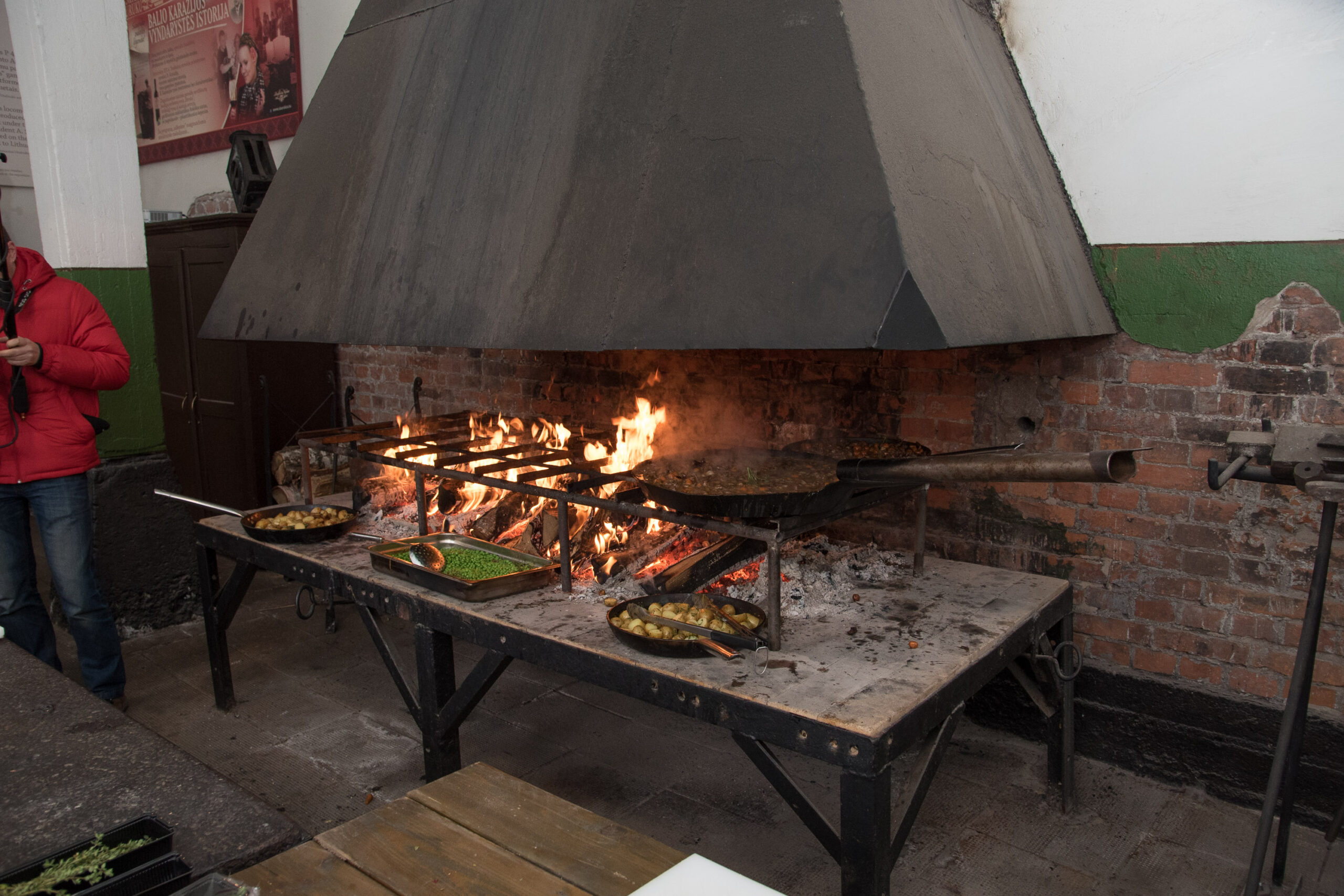 Kalvėje, prie jaukiai besikūrenančios ugnies laukdami svečių sparčiai sukosi virtuvės šefai Evaldas Žaliukas ir Algirdas Matačiūnas.