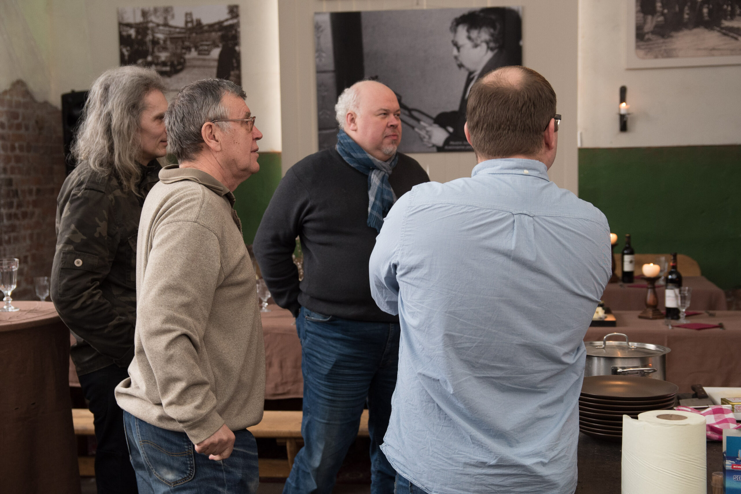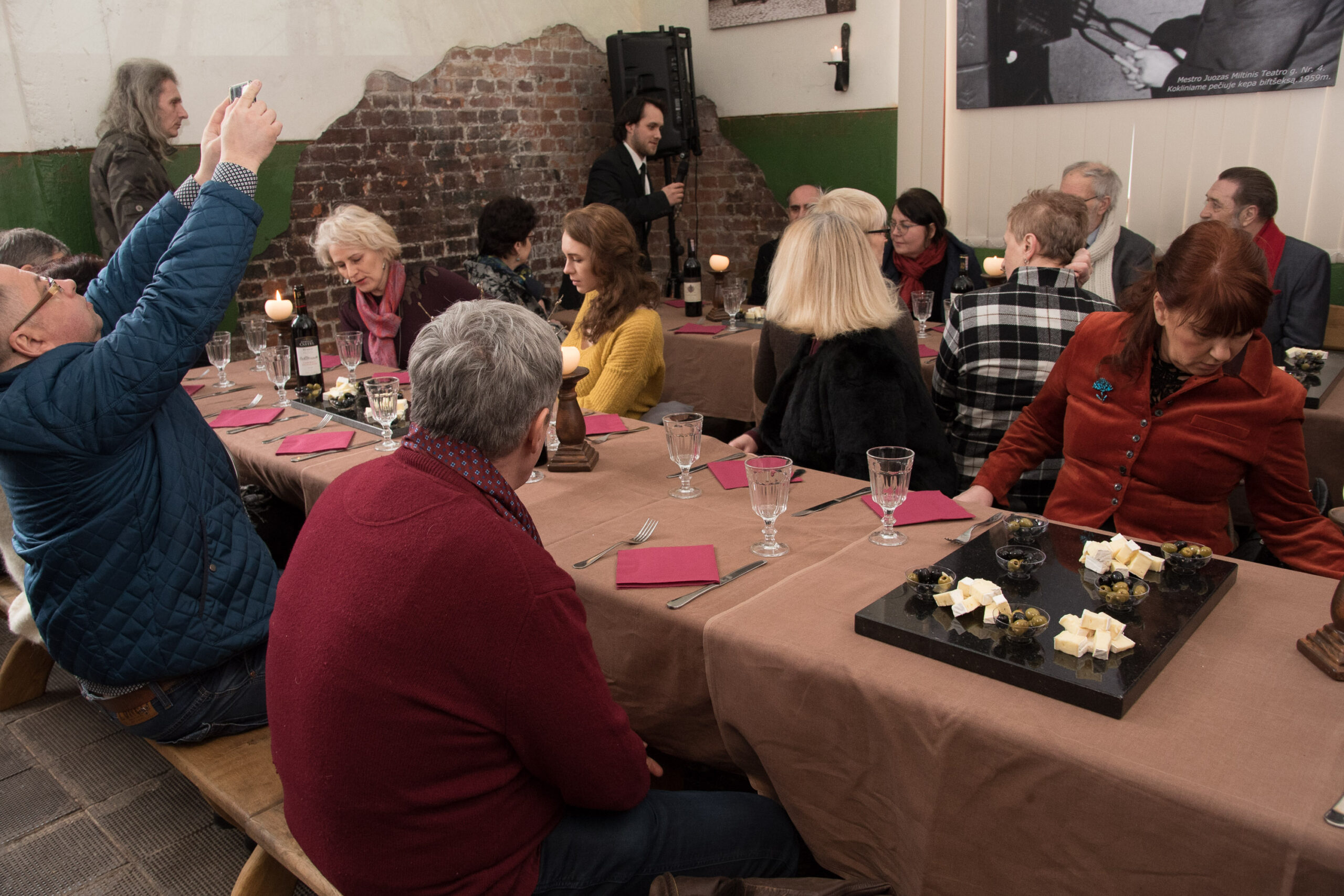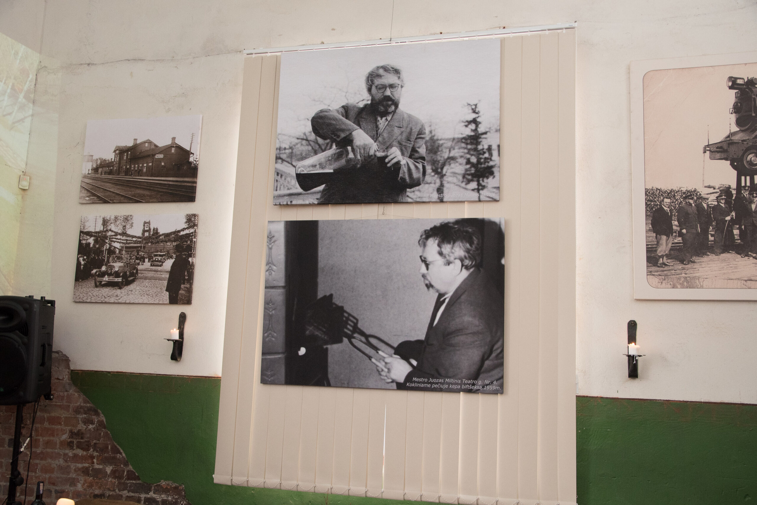 O tuo tarpu nuo kalvės sienų iš nuotraukų į susirinkusiuosius žvelgė pats šventės kaltininkas – režisierius J. Miltinis. Vienoje iš nuotraukų jis įamžintas ir savo taip mėgtą jautienos kepsnį kepantis.