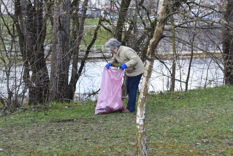 Nevėžio pakrantes prie Futbolo akademijos stadiono su bendraminčiais tvarkiusi vietos bendruomenės „Už upės“ narė Zita teigė, kad prie akcijos prisidedanti kiekvienais metais, o niūrios orų prognozės jos nė kiek negąsdina.
