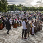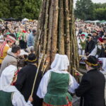 Saulei leidžiantis už parko, buvo prisimintos ir senosios pagoniškos apeigos: žynys ant alkakalnio pagarbino ugnį, buvo uždegtas laužas, plukdomi vainikėliai.
