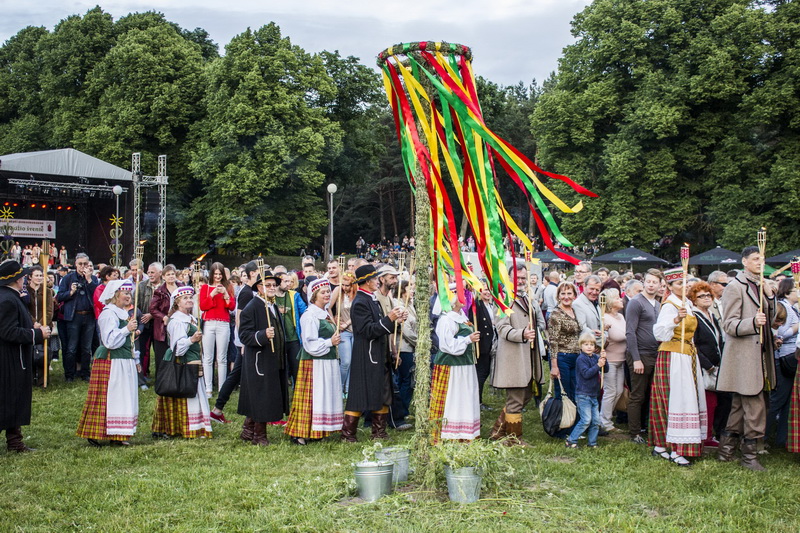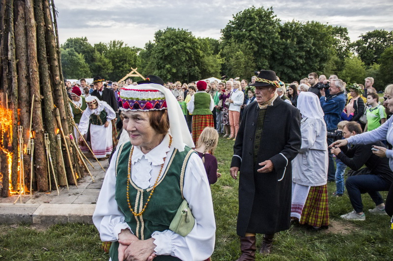 Saulei leidžiantis už parko, buvo prisimintos ir senosios pagoniškos apeigos: žynys ant alkakalnio pagarbino ugnį, buvo uždegtas laužas, plukdomi vainikėliai.