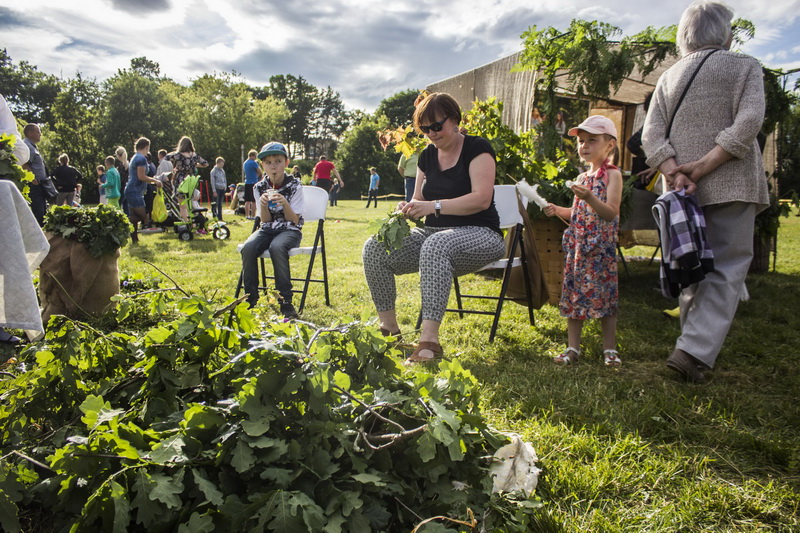 „Mama Janina, todėl pagalvojau nupinsiu vainiką. Visada tik iš gėlių piname, o iš ąžuolo šakelių kažkaip niekas dar nenupynė“, – kalbėjo moteris, kurios teigimu Joninės jų namuose – didelė šventė.