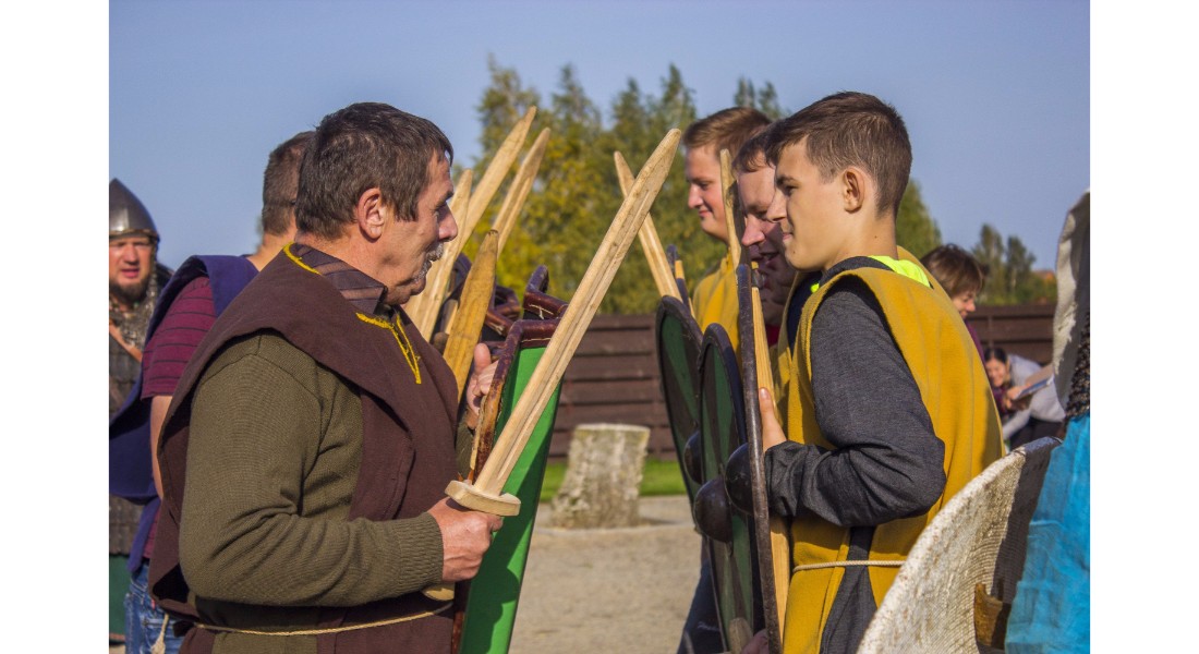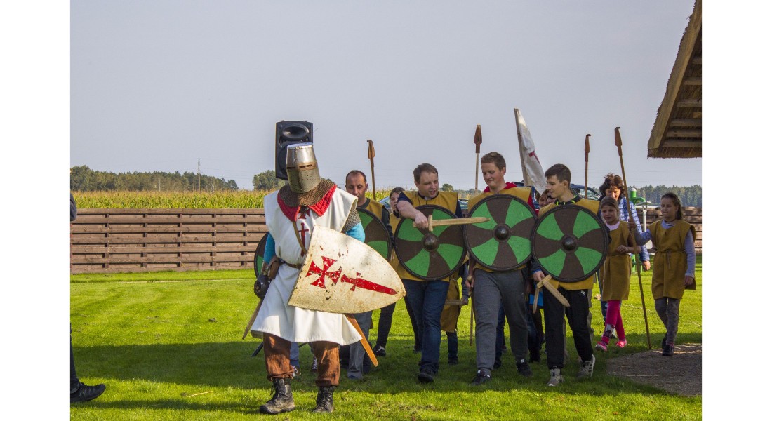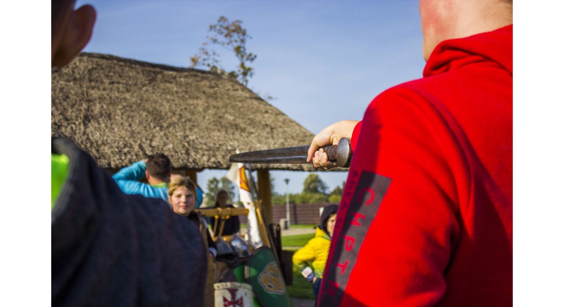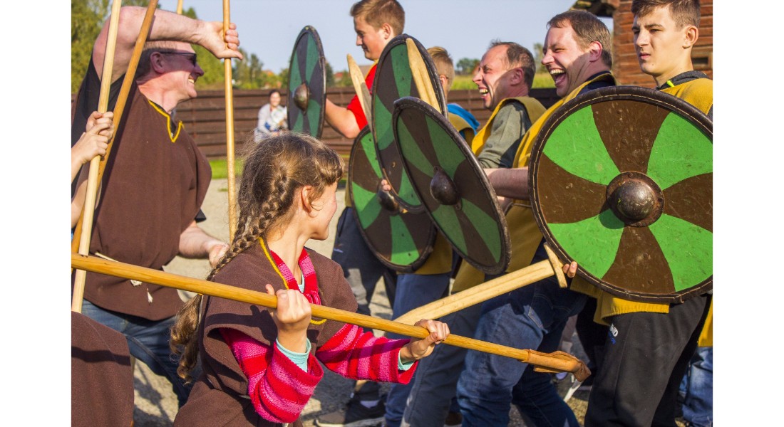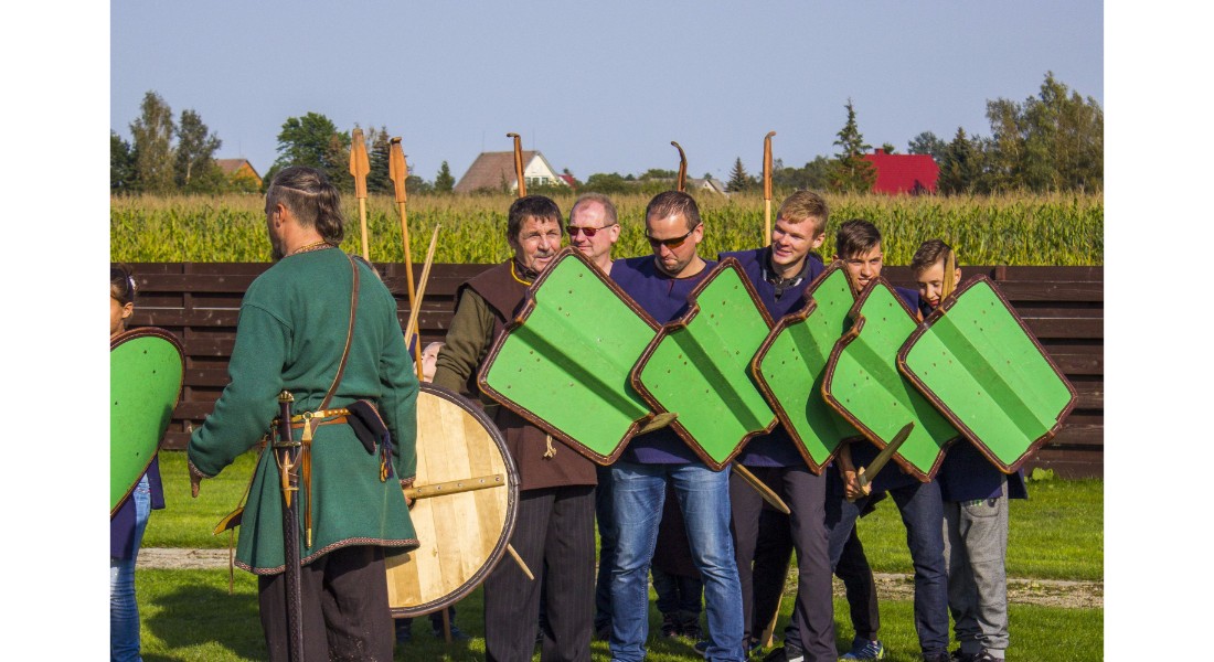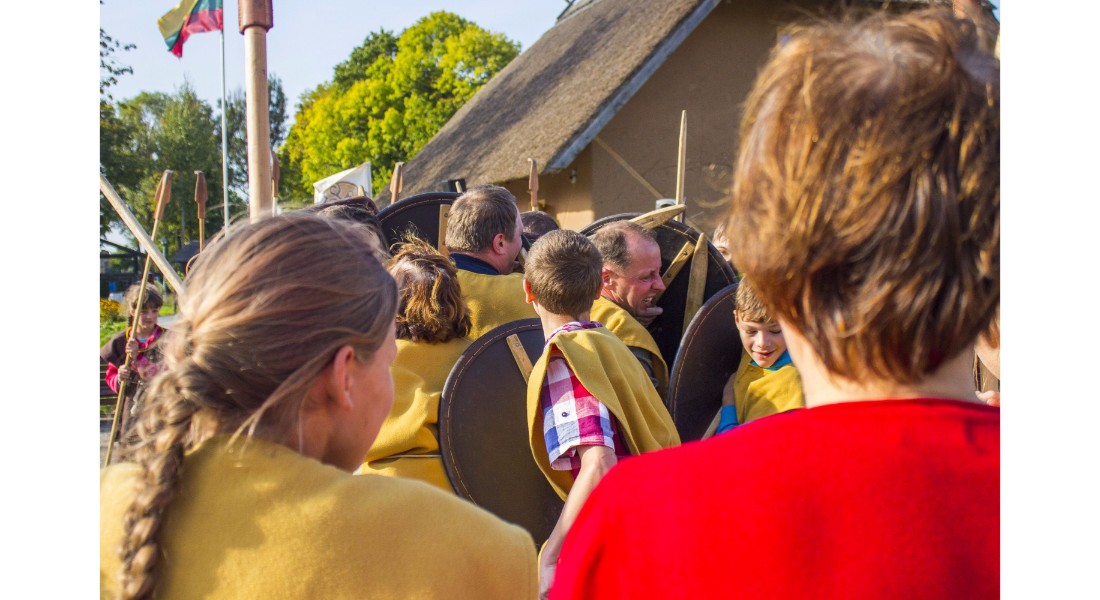 Įdomu buvo pasižvalgyti ir po vikingų kaimą. Kadangi sąlygos rajone sudėtingos – dėl ankščiau iškritusio lietaus šlapia, technika klimpsta, tad viduramžių kaimą teko perkelti prie Amatų centro, o ne prie piliakalnio. Susirinkusiems surengtas įspūdingas Saulės mūšio, įvykusio 1236 metų rugsėjo 22 dieną tarp žemaičių ir kalavijuočių ordino imitacinis vaidinimas. Šis mūšis itin svarbus baltams – jo dėka buvo nutrauktas kitų baltų žemių užkariavimas.