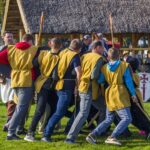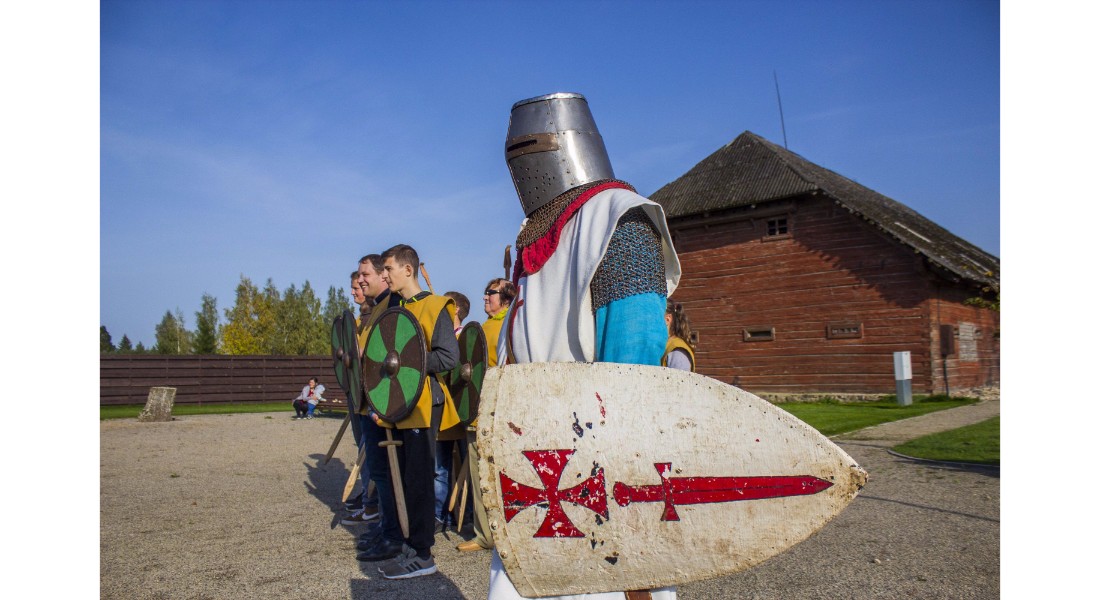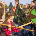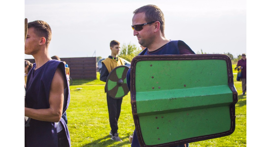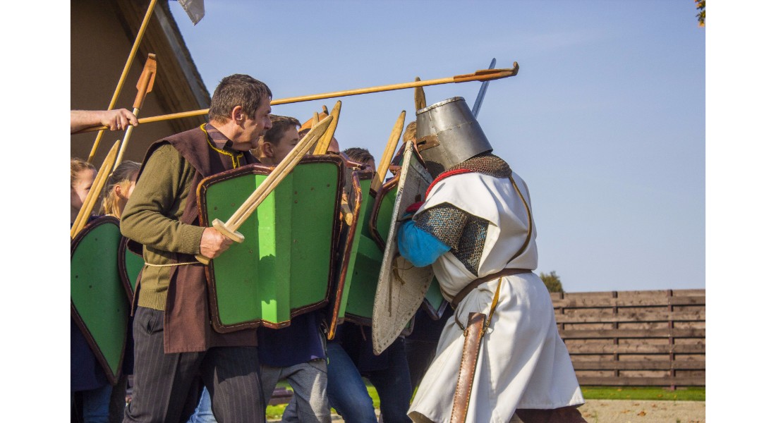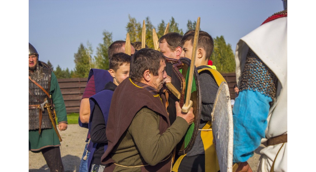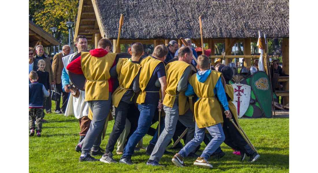 Įdomu buvo pasižvalgyti ir po vikingų kaimą. Kadangi sąlygos rajone sudėtingos – dėl ankščiau iškritusio lietaus šlapia, technika klimpsta, tad viduramžių kaimą teko perkelti prie Amatų centro, o ne prie piliakalnio. Susirinkusiems surengtas įspūdingas Saulės mūšio, įvykusio 1236 metų rugsėjo 22 dieną tarp žemaičių ir kalavijuočių ordino imitacinis vaidinimas. Šis mūšis itin svarbus baltams – jo dėka buvo nutrauktas kitų baltų žemių užkariavimas.