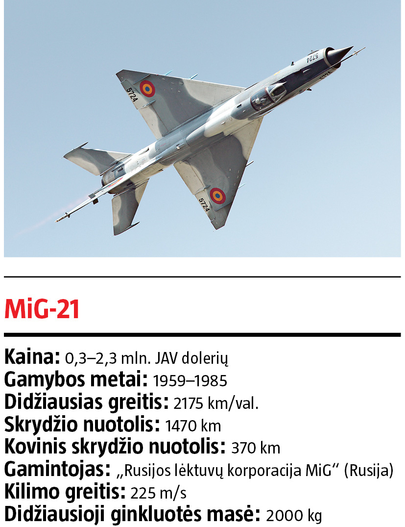 2007 m. rumunai į Lietuvą atgabeno senutėlius, tačiau kiek atnaujintus rusiškus „MiG-21 Lancer C“. Juos šiuo metu eksploatuoja tokios šalys kaip Mozambikas, Šiaurės Korėja, Malis, Uganda ir kitos trečiojo pasaulio valstybės. 2004 m. patruliavę vokiški „Panavia Tornado ADV“ pasižymėjo kiek geresne ginkluote, stipresniais radarais, elektronika ir akceleracija nei „F-4 Phantom II“ bei MiG-21, tačiau buvo beviltiškai prasti oro dvikovose.