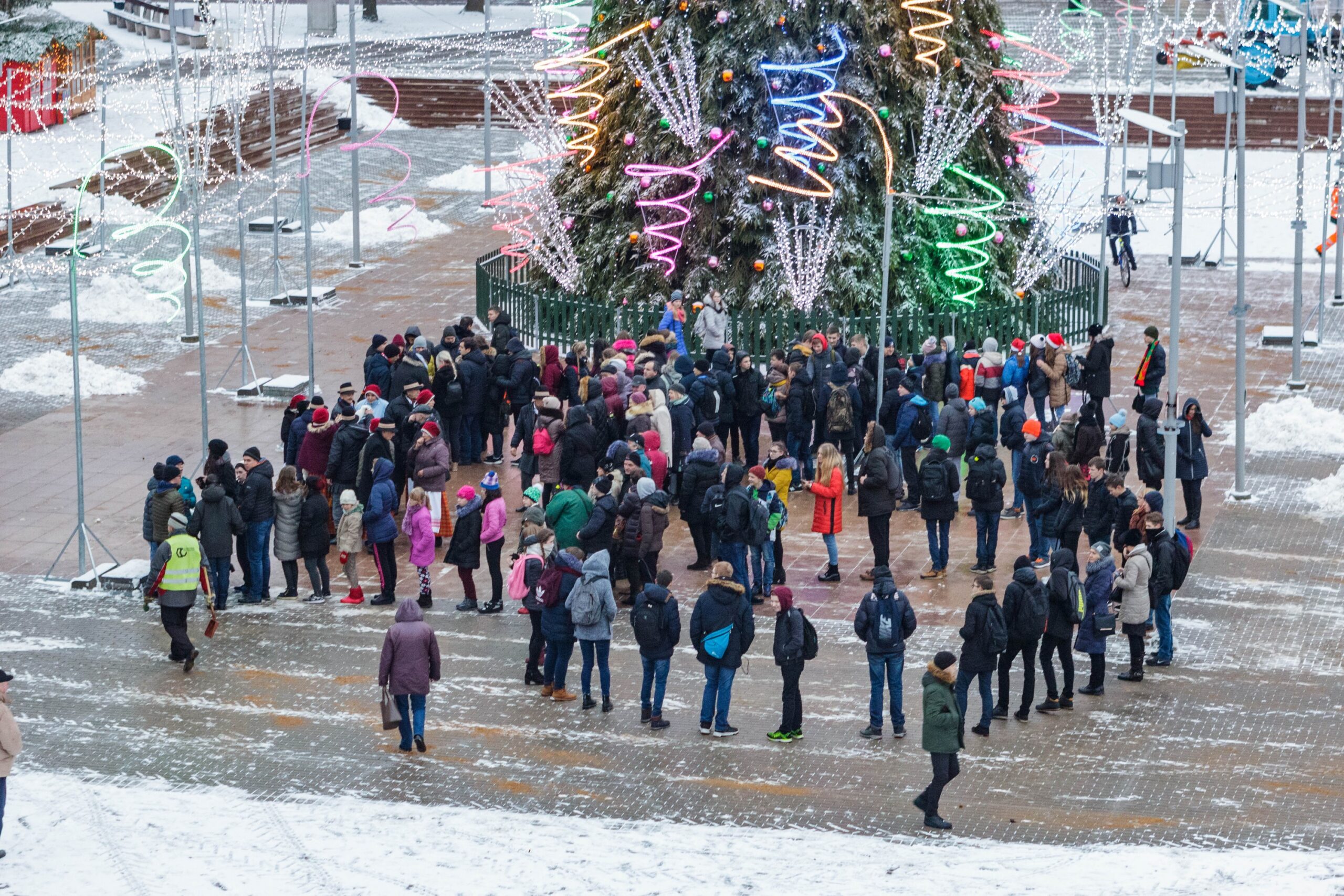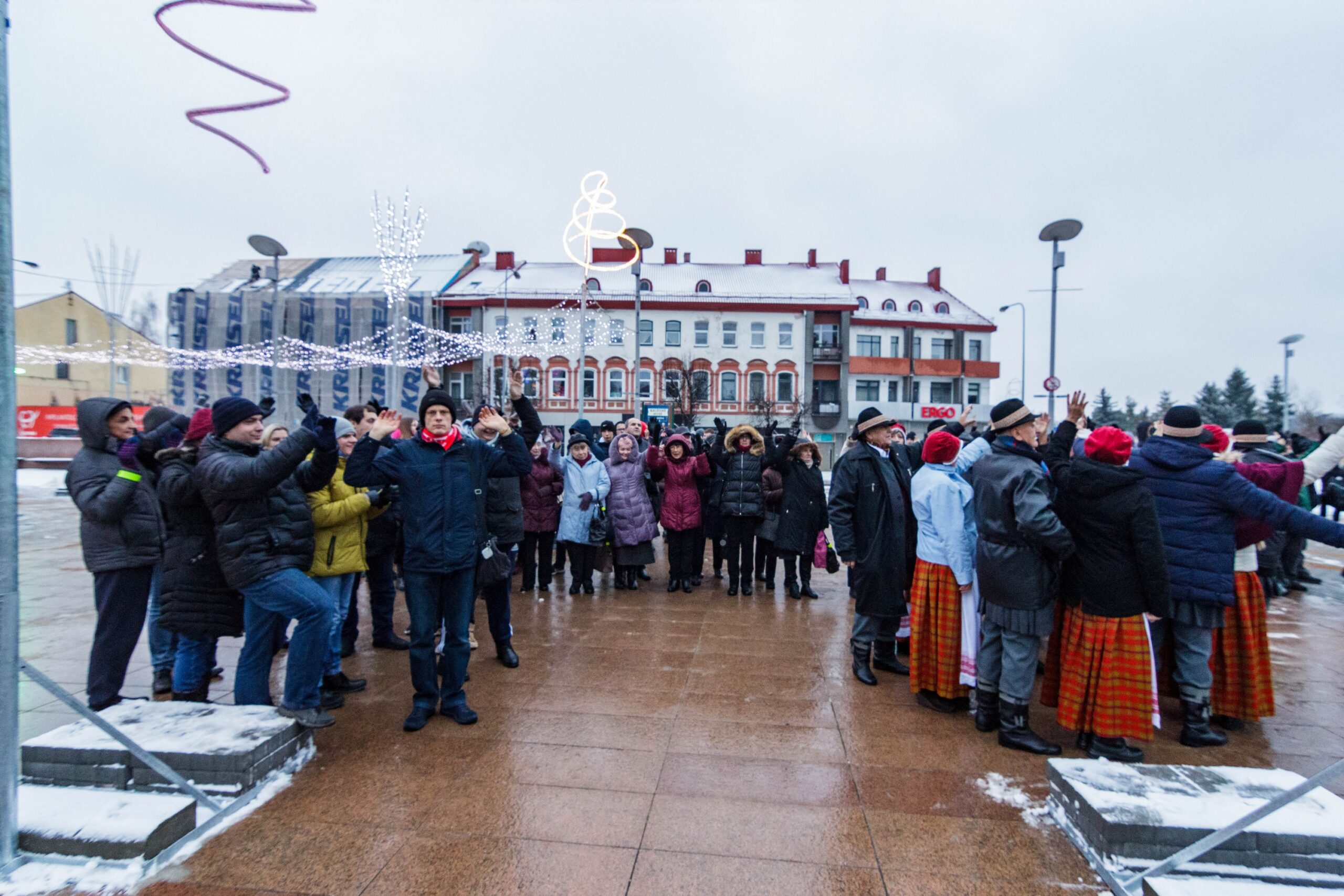 Šiandien į gyvą skulptūrą stojančius žmones sukviesti buvo kiek sudėtingiau. Nuo ryto prasidėjęs snygius subūrė kur kas mažiau iniciatyvių panevėžiečių. Susirinkusiuosius linksmino ir Panevėžio bendruomenių rūmų šokių kolektyvas „Gija“.