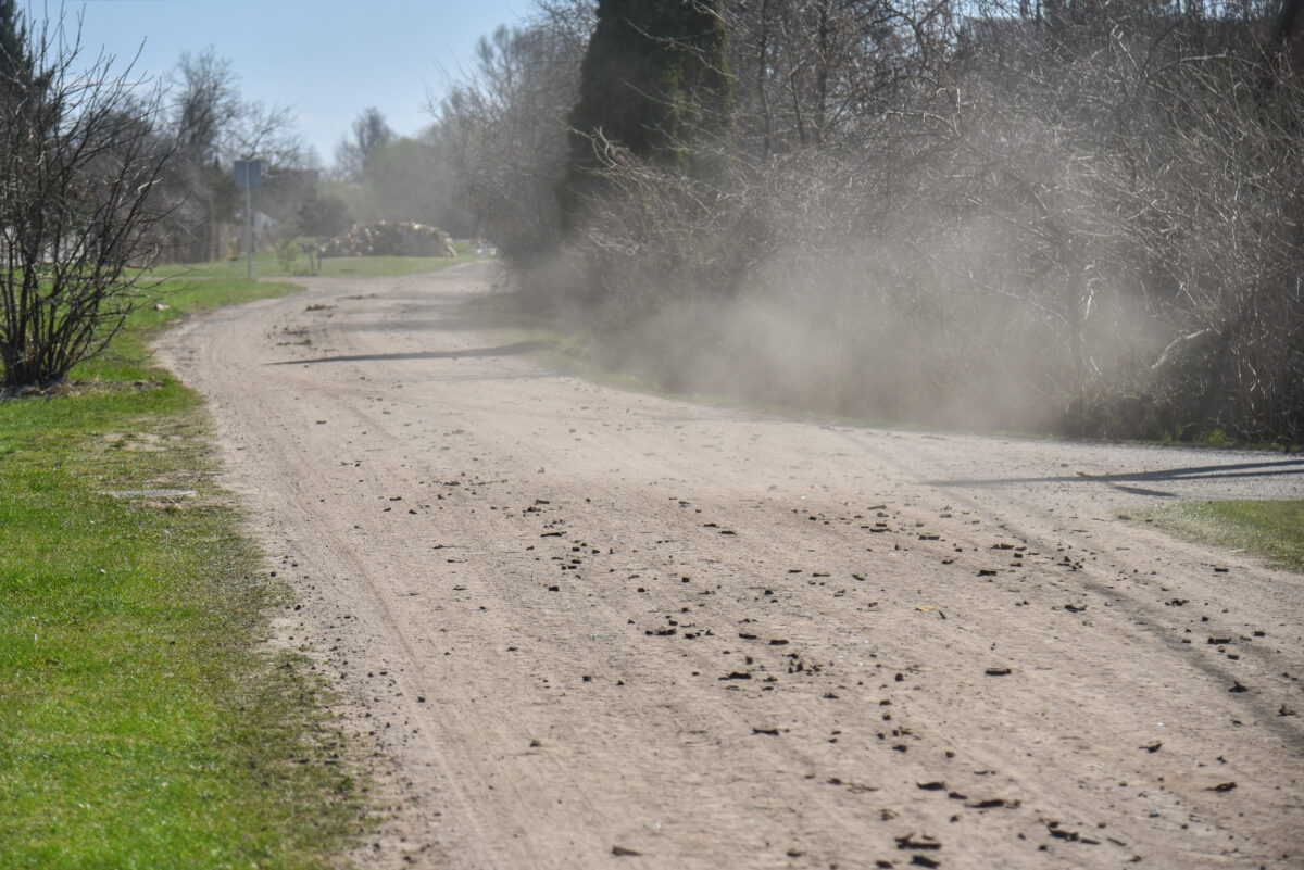Priemiesčio gatvelė visai siaura, net du lengvieji automobiliai neprasilenkia, nėra jokių pėsčiųjų takų. Gyventojai įsitikinę, kad sunkiajam transportui čia važinėti turėtų būti uždrausta. Baisiausia, anot Dalios, kad juodžemio prikrautos mašinos lekia didžiuliu greičiu. Praktiškai visa gatvė nuklota jų vežamu juodžemiu, kuris sudžiūvęs virsta dulkių debesimis.