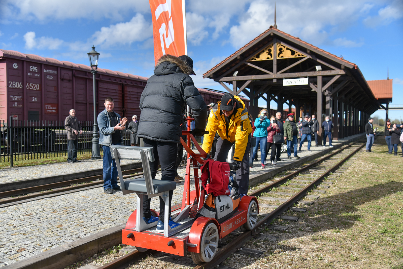 Panevėžietis keliautojas, automobilių sporto entuziastas Audrius Sutkus su bendraminčiu vilniečiu Vitoldu Miliumi nusiteikę tapti pasaulio rekordininkais. Bičiuliai rankine drezina – savaeigiu geležinkelio vežimėliu – bandys įveikti 69 kilometrus bėgiais nuo Panevėžio geležinkelio stoties iki Rubikių. Šeštadienio rytą panevėžiečiai susirinko į Aukštaitijos siaurojo geležinkelio stotį išlydėti ekstremalų į žygį rankine drezina.