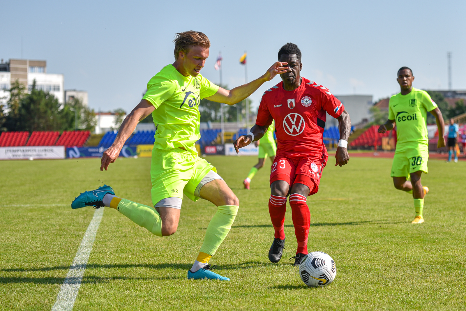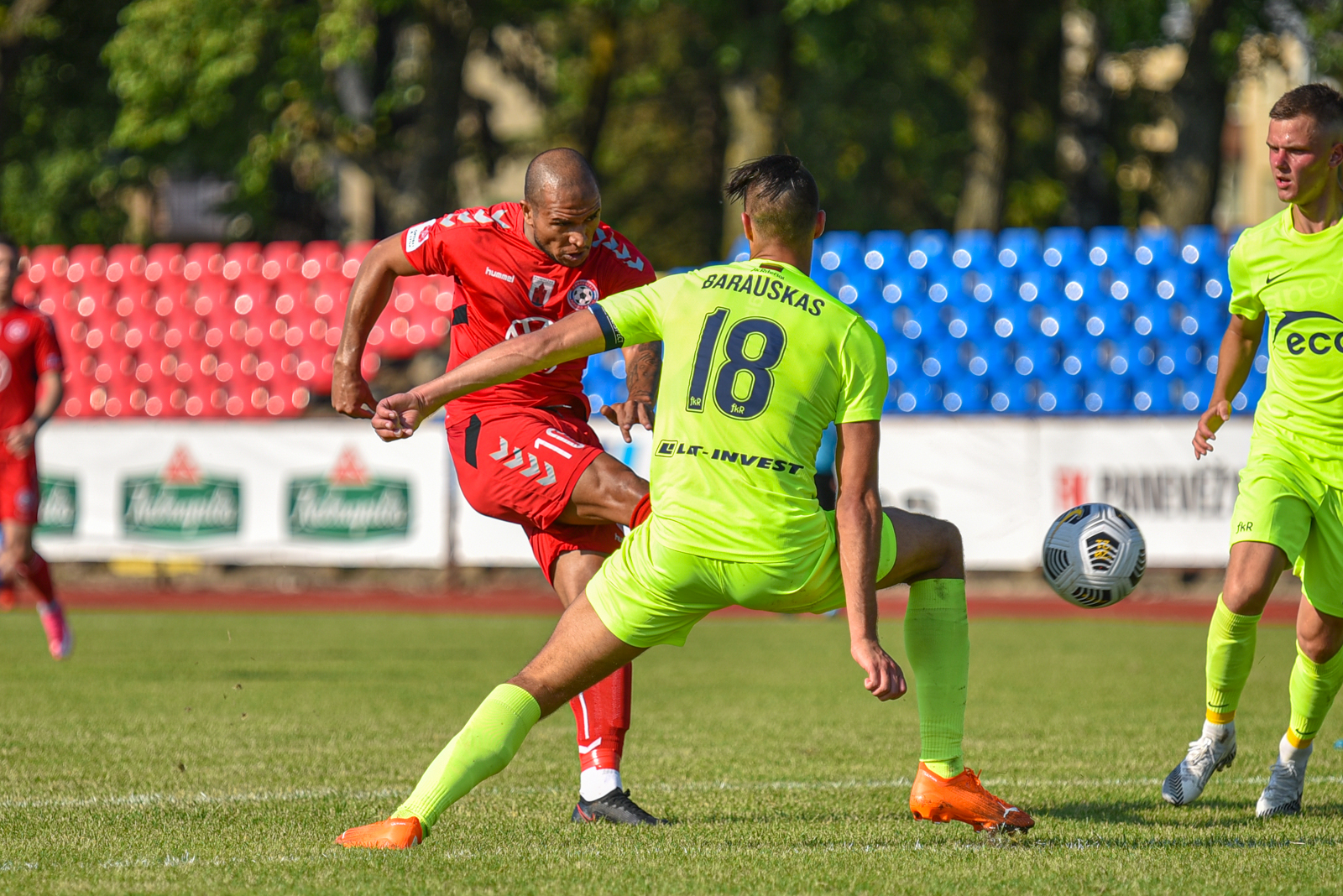 36-ąją mačo minutę Elivelto klastingu smūgiu bandė pelnyti įvartį, bet brazilo smūgiuotą kamuolį atrėmė patikimai sužaidęs „Riterių“ vartininkas Armantas Vitkauskas.