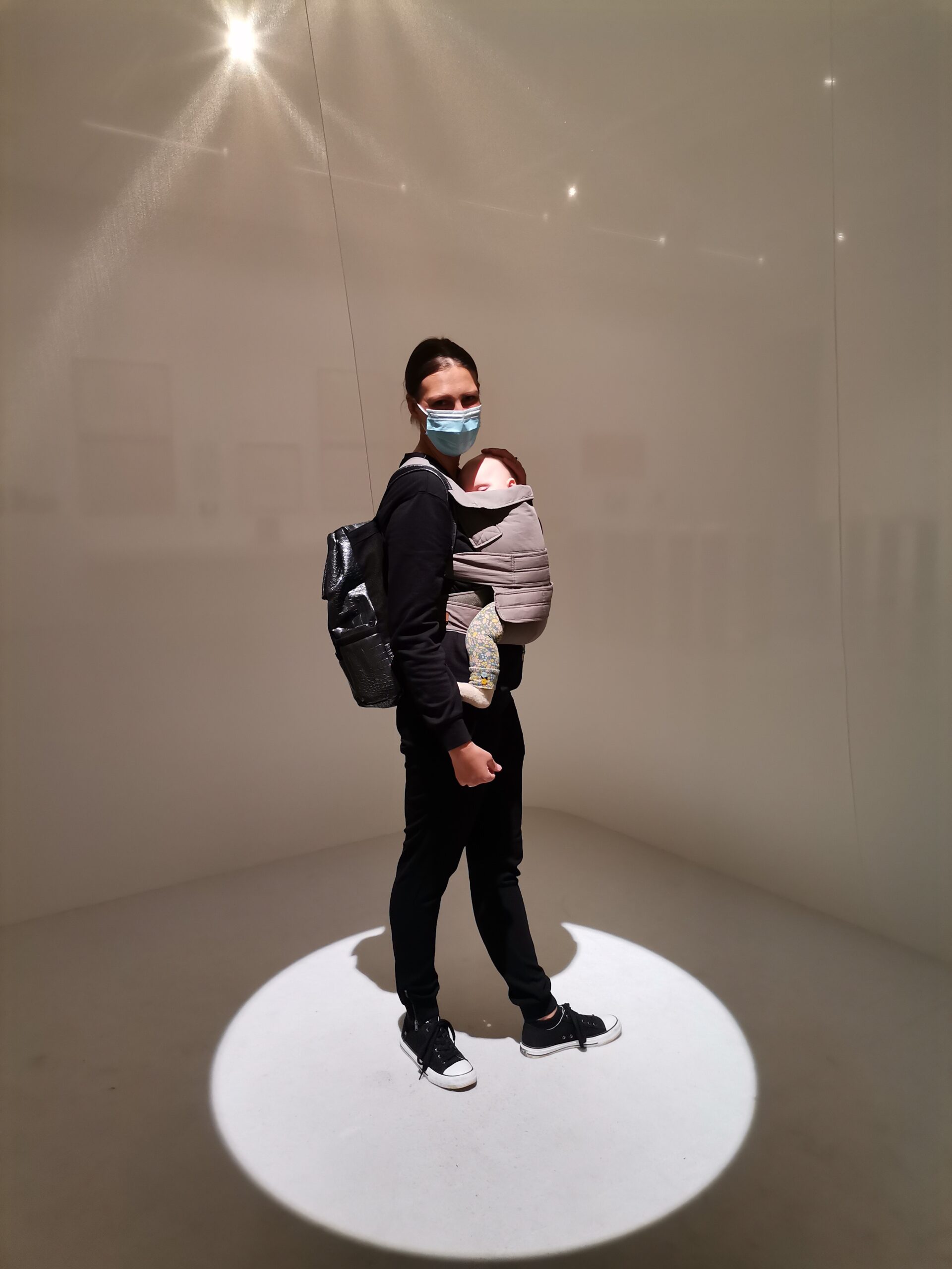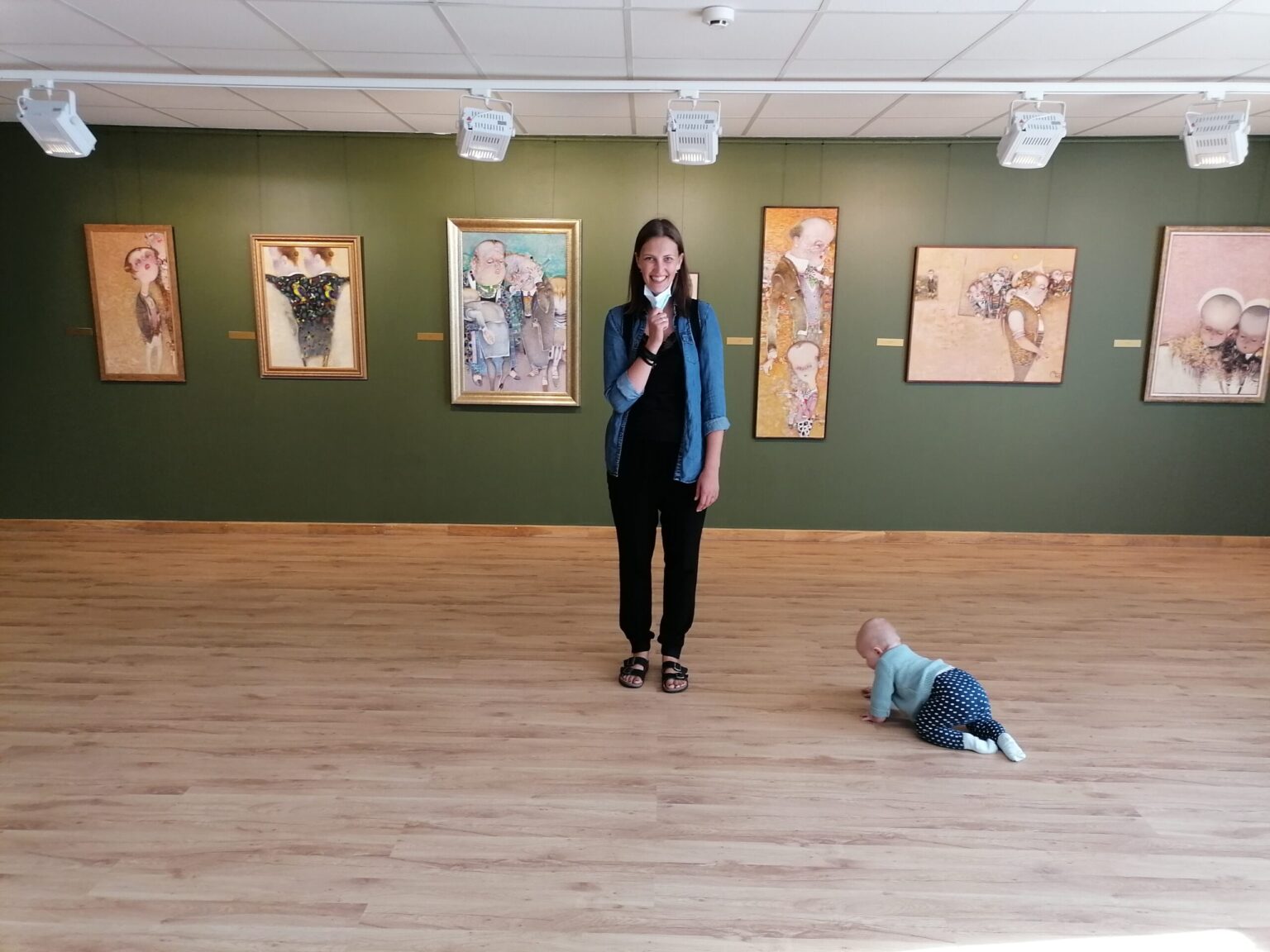 Kad jau net per atostogas menotyrininkės veikla nenutrūksta, natūralu, kad ir vienuolikos mėnesių dukrytė bent jau kol kas po galerijas ir parodas keliauja kartu.