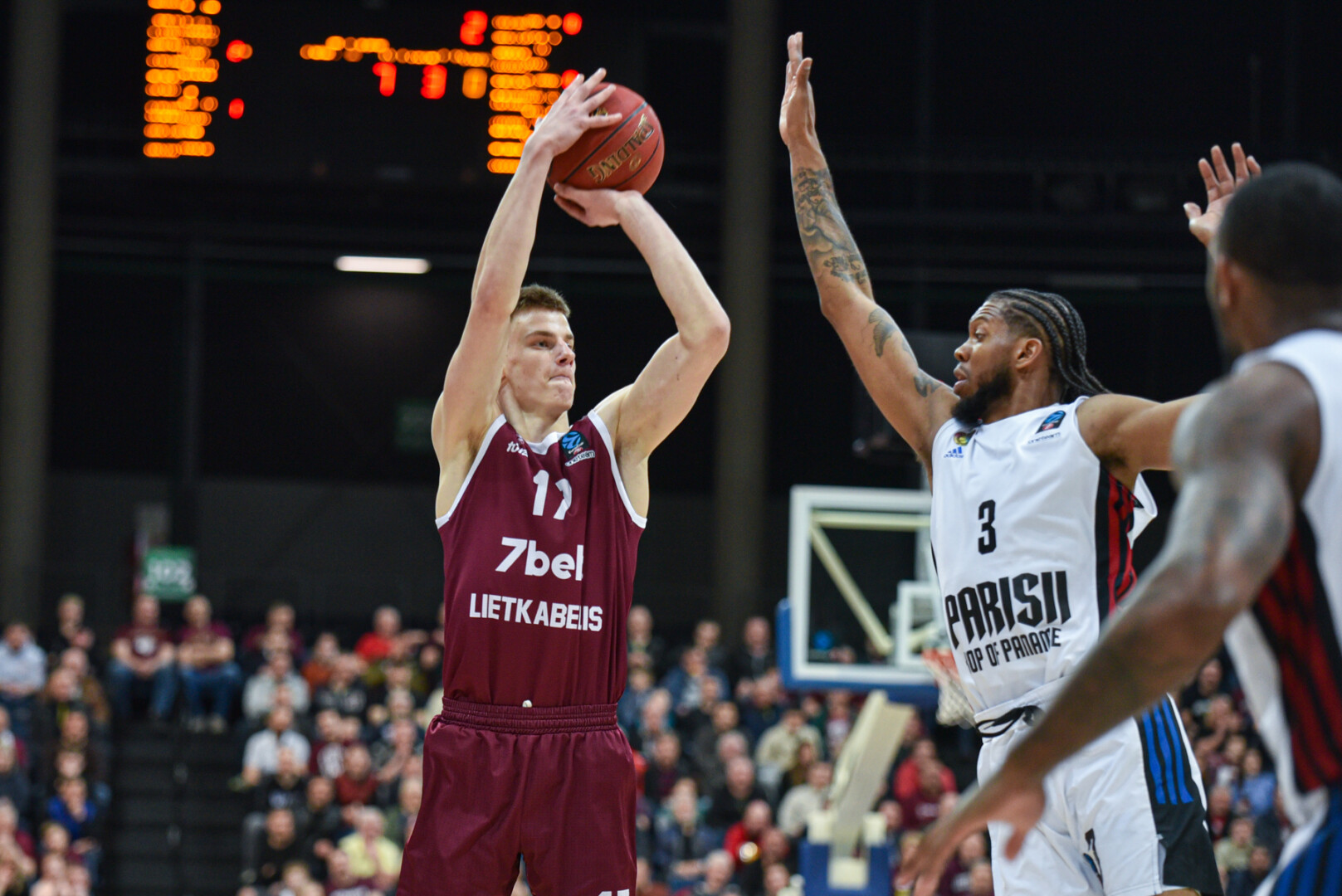 Antrąją rungtynių pusę šeimininkai pradėjo atkarpa 7:3, kas leido persverti rezultatą savo naudai (52:49). „Paris Basketball“ netrukus išsiveržė į priekį. Nuožmi kova tęsėsi ir toliau, o prieš lemiamą ketvirtį šeimininkai pirmavo 3 taškais – 74:71.