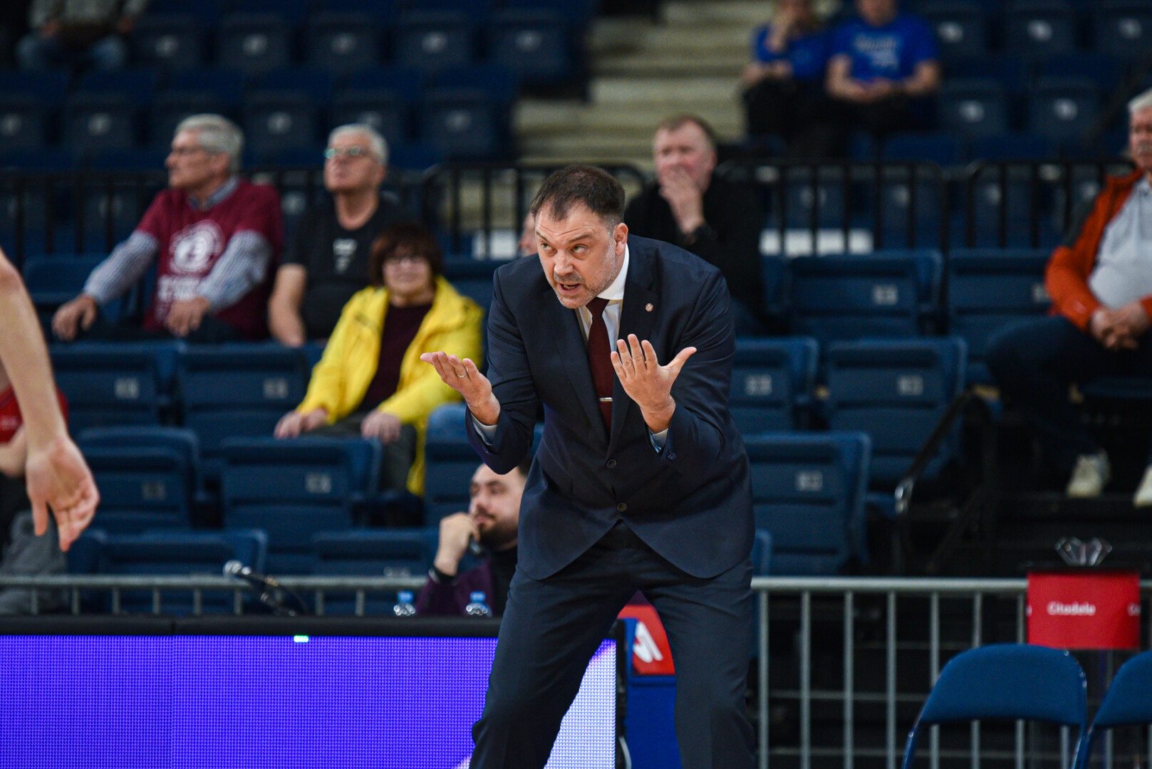 Antrojo ketvirčio pradžioje „Labas Gas“ pranašumas jau buvo buvo dviženklis – 37:26. „7bet-Lietkabelio“ strategas N. Čanakas iškart paprašė minutės pertraukėlės. Po jos panevėžiečiai laimėjo atkarpą 7:0, o prieniškių persvarai sumažėjus iki 4 taškų (37:33) svečių komandos vyriausiasis treneris Marius Kiltinavičius paprašė atsakomosios pertraukėlės. Po jos aikštėje vyko kova taškas į tašką. Poilsios komandos išėjo „7bet-Lietkabeliui“ atsiliekant minimaliu skirtumu 45:46.