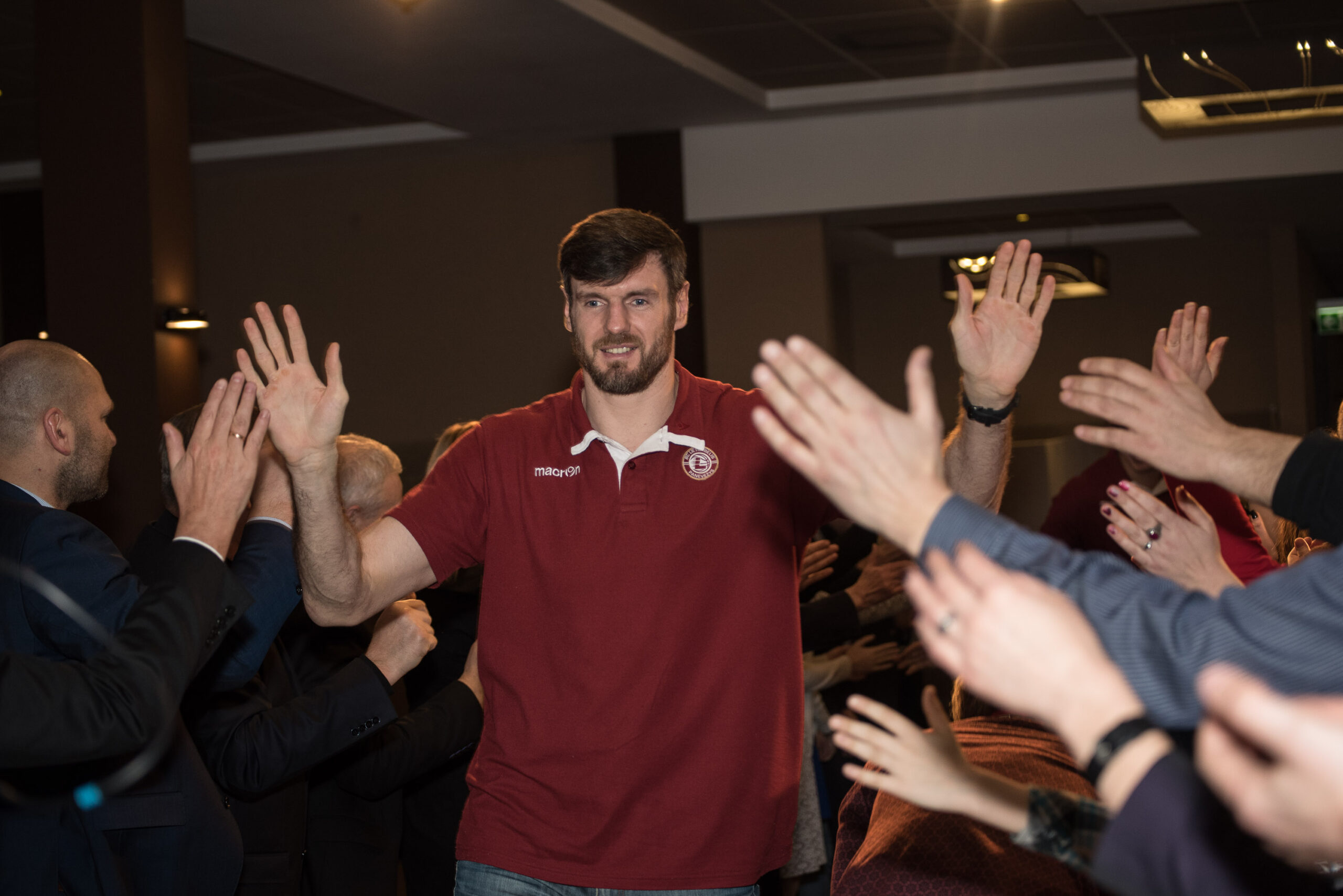 Renginio pradžioje rėmėjai ir sirgaliai padarė gyvą tunelį ir, kaip prieš realų krepšinio mačą, audringais plojimais ir palaikymo šūksniais pasitiko „Lietkabelio“ kolektyvą.