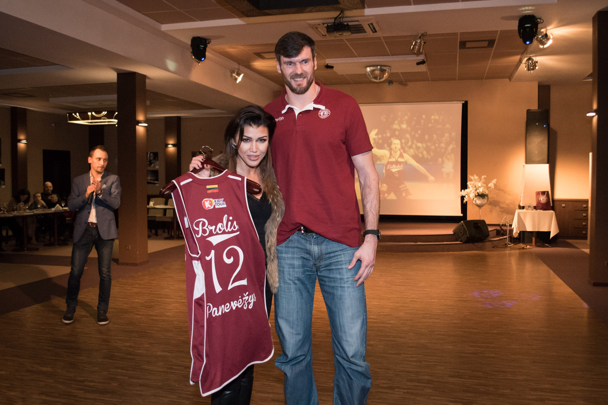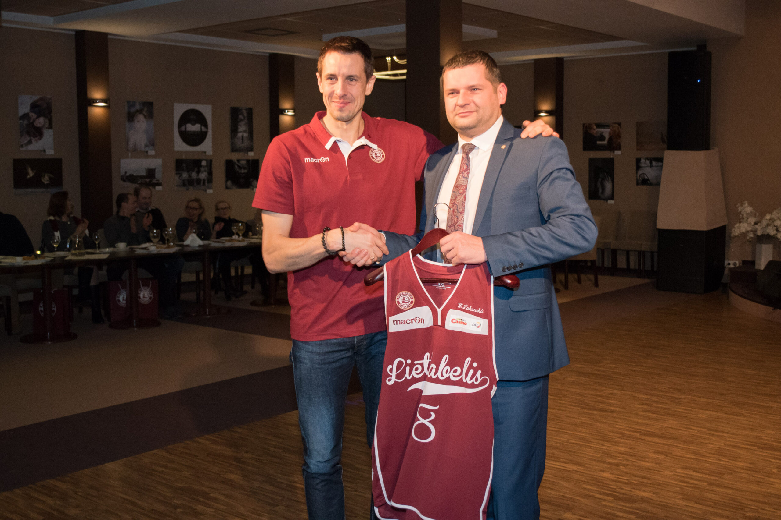 Prieš pat renginio pradžią per projektorių visus renginio dalyvius vaizdo pranešimu iš Italijos sveikino ir „Lietkabeliui“ sėkmės linkėjo šiuo metu Emilijos Redžo „Grissin Bon“ klube žaidžiantis 39-erių Rimantas Kaukėnas.