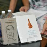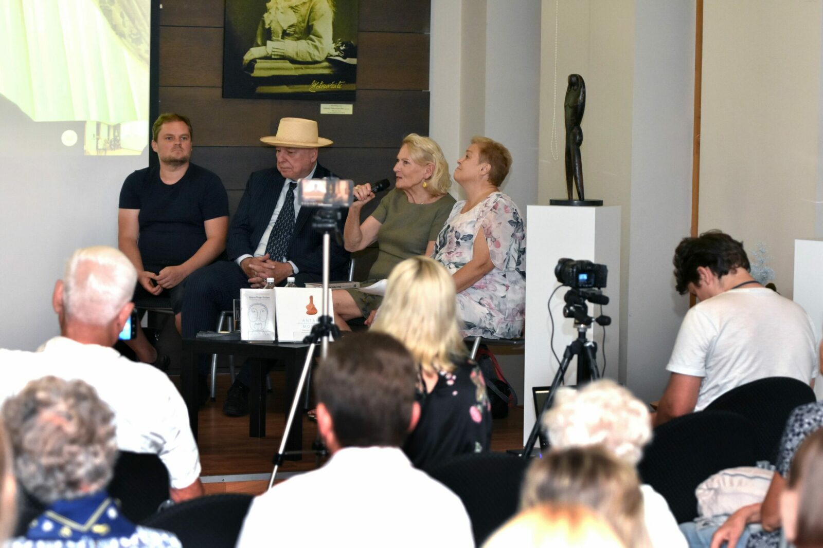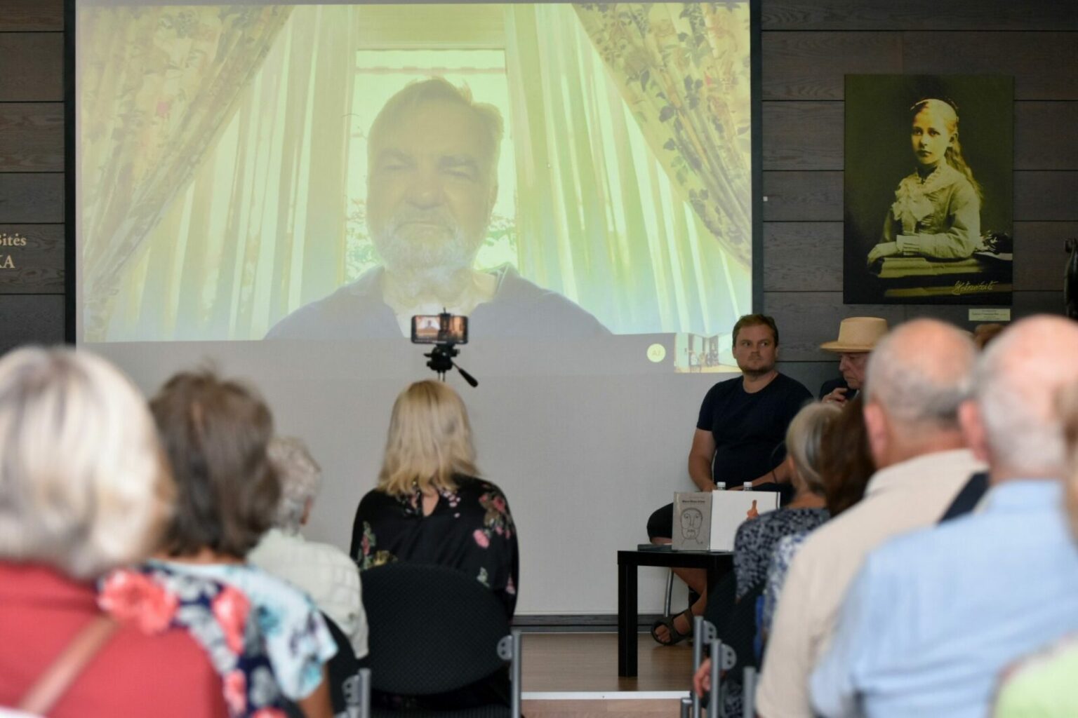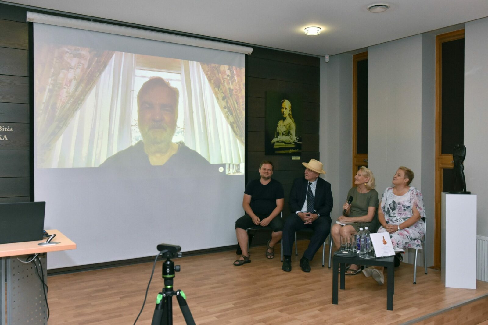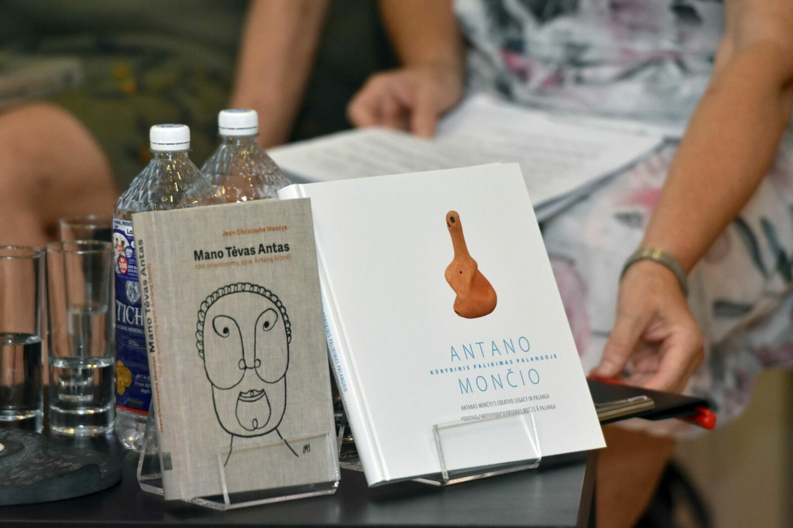 Susitikimo bibliotekoje ir knygos „Mano tėvas Antas“ bei filmo „Mončys. Žemaitis iš Paryžiaus“ pristatymo vakarą pradėjo A. Mončio sūnus, aktorius, režisierius, oratorinio meno mokytojas Jeanas Christophe‘as Mončys, žemu balsu sudainavęs XIX a. lietuvių lopšinę „Šile gegė kukavo“.