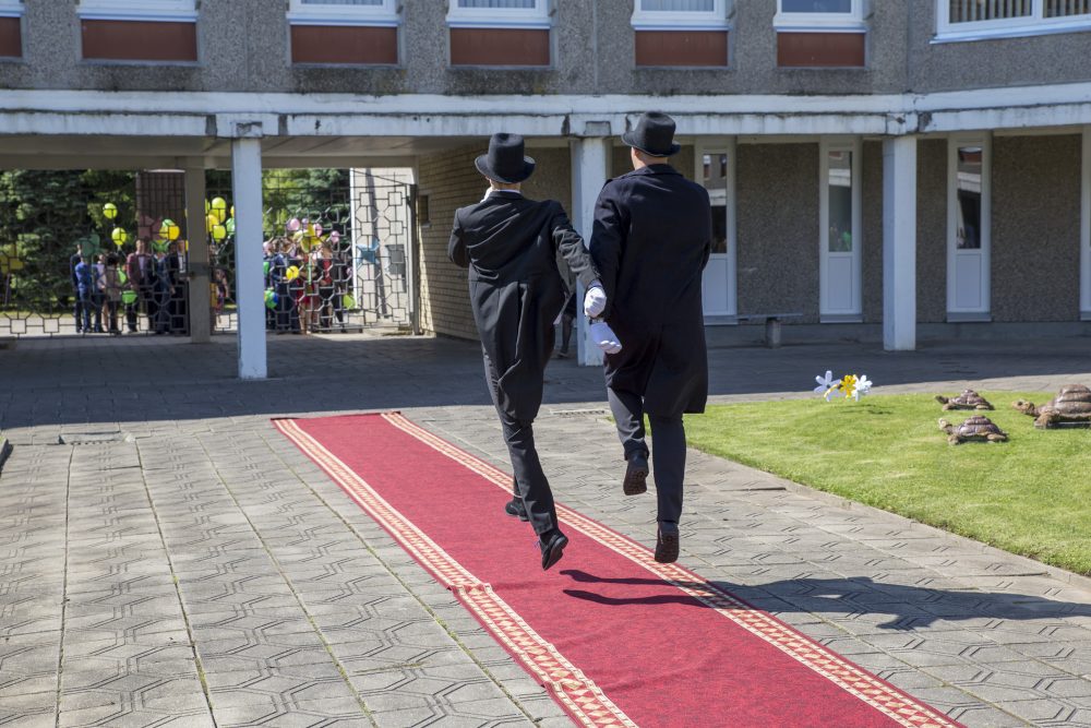 Anksčiausiai į šventę rinkosi Panevėžio „Minties“ gimnazijos mokiniai. Gimnazistai nekantriai trypčiojo šalia vartų į vidinį mokyklos kiemą, kuriame jau laukė nemažas smalsuolių būrys. Skambant garsiai muzikai, viena po kitos į gimnazijos teritoriją raudonu kilimu žengė abiturientų klasės. Šiemet keturias klases išleidžiančiai gimnazijai abiturientai dovanojo palikimo piešinius: linkėjimus, įamžintus baltuose molbertų lapuose.