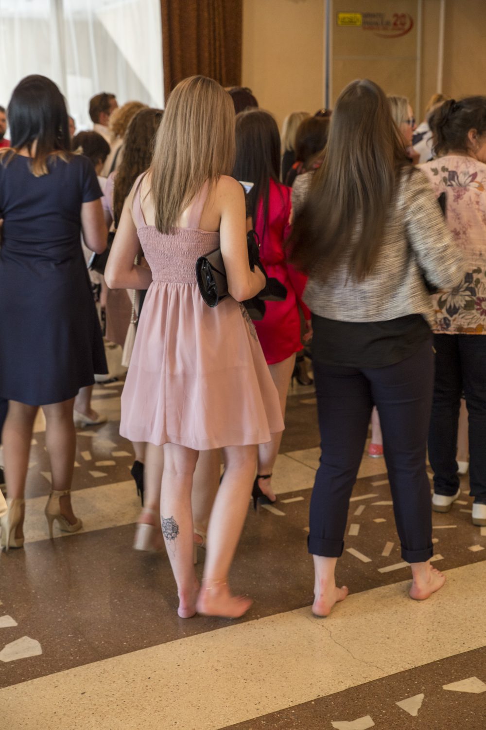 Vis tik įšilęs oras darė savo. Ne viena puošni gimnazistė drąsiai nusiavė aukštakulnius batelius, o nuvargusias kojas atgaivino mineralinio vandens purslais.