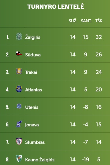 Kauno ekipai tai buvo tik pirmoji pergalė čempionate ir su 5 taškais ji išlieka paskutinė.