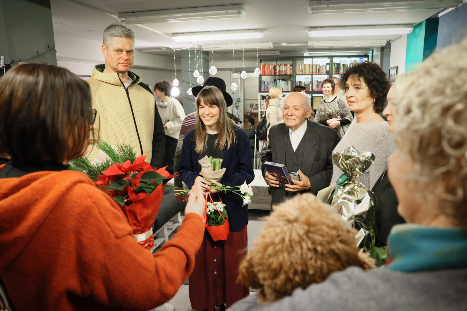 Svarsčiau net nesakyti, o tiesiog jį pasikviesti, bet visgi pasakiau, nes močiutė labai klausinėjo. Kadangi prieš parodos atidarymą nuotraukų seneliui nerodžiau, labai rūpėjo pamatyti jo reakciją. Labai miela buvo stebėti, kaip ruošdamasis į atidarymą galvojo, kaip pasipuošti, ieškojo kostiumo, nusiskuto barzdą. O per patį atidarymą matėsi, kad jam labai gera, jog tiek daug žmonių susirinko.