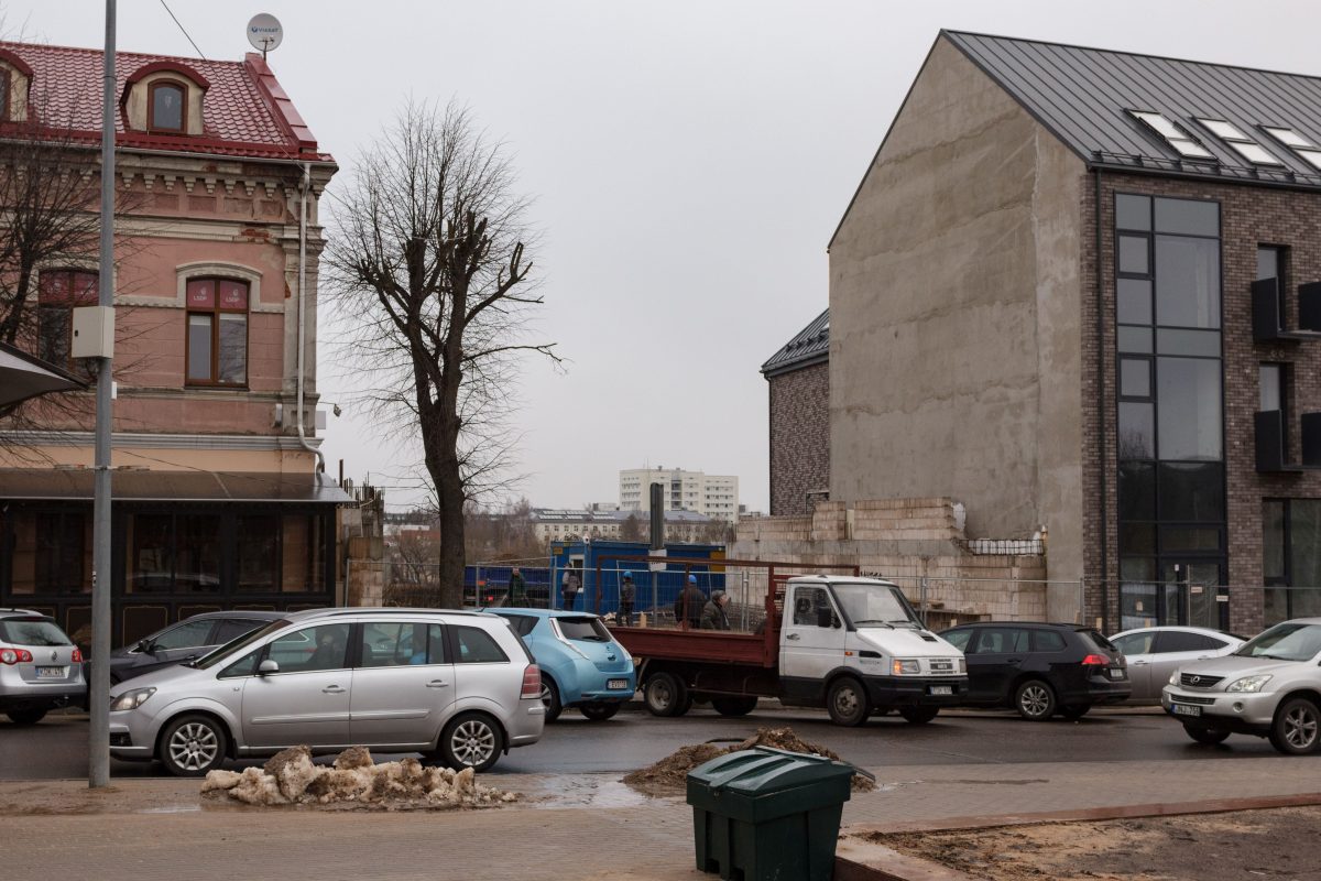 Šį kampelį kurį laiką dengė spalvotos užtvaros, slėpusios kadaise banko statybai ruoštą vietą.