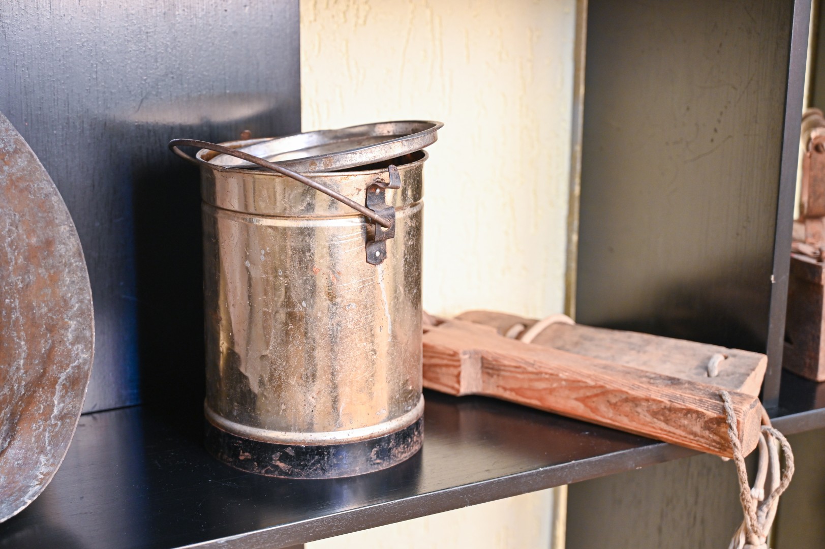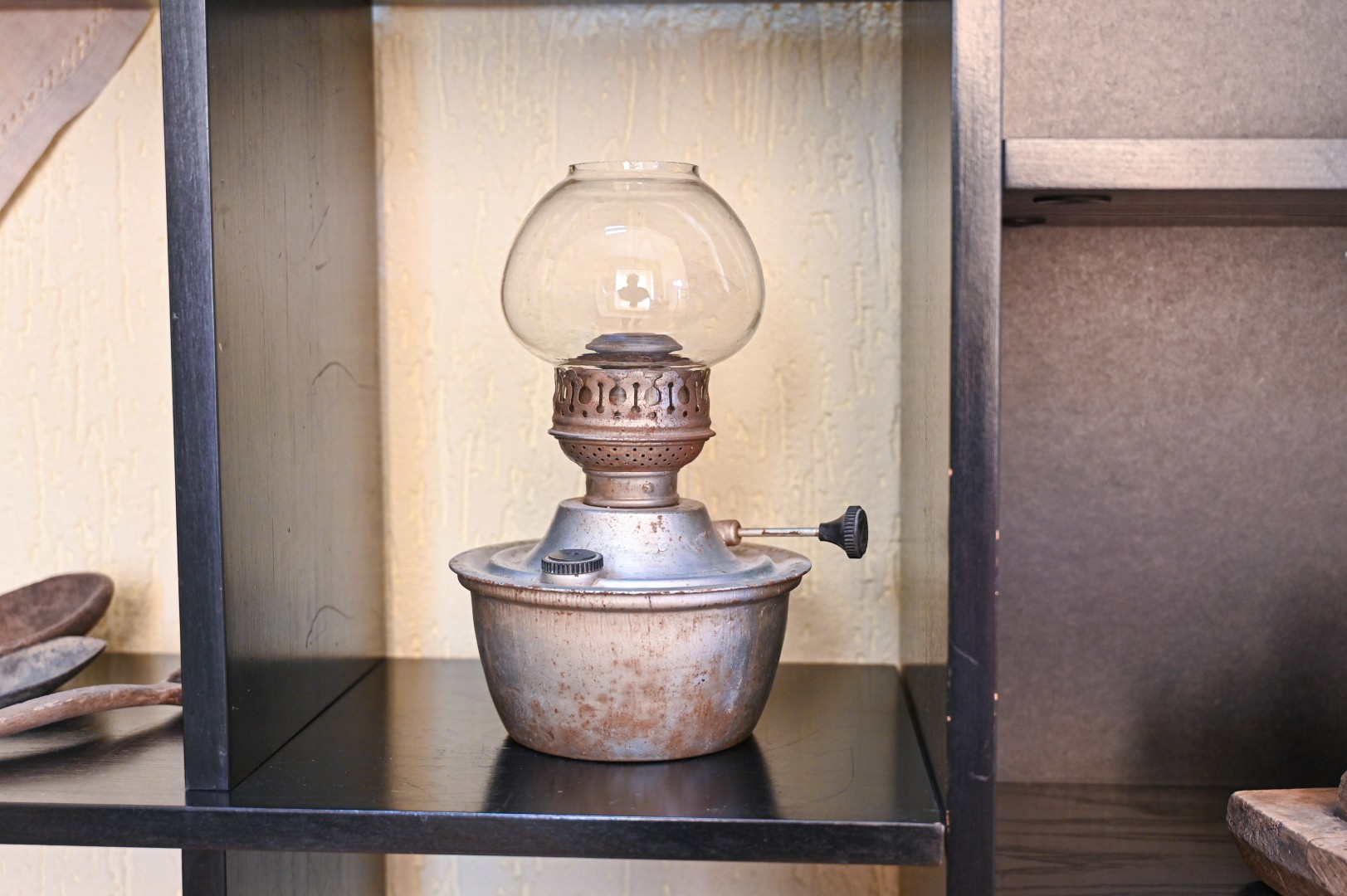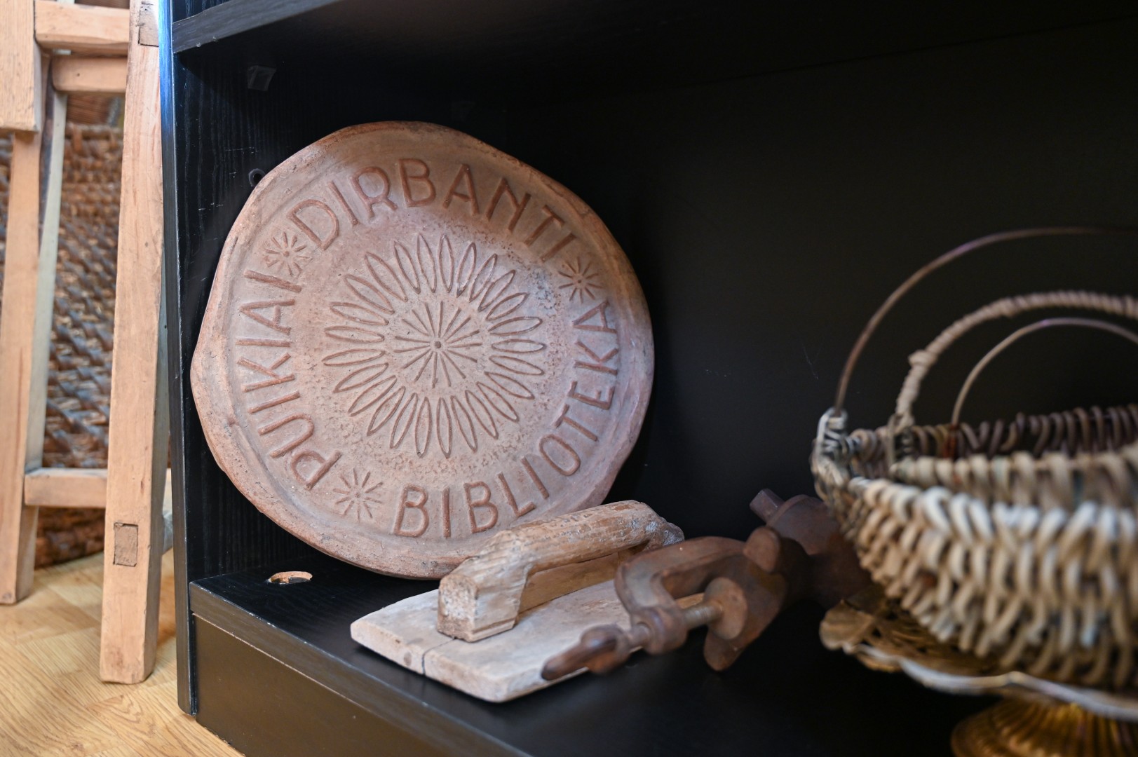 Kiti eksponatai įprastesni: žibalinės lempos, anglimi įkaitinamas lygintuvas, sietas ir gelda su sudėtais linų pluošteliais.