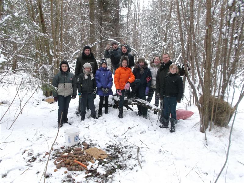Sausio 29 dieną mokiniai su gėrybėmis išsiruošė į Raguvos girininkijos miškus. Ten būrelio narius pasitiko girininkas Kęstutis Žilinskas, girininko pavaduotojas Gediminas Garšva, eiguliai Vidmantas Kavaliauskas ir Artūras Rusilas.