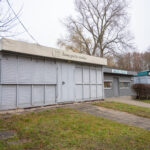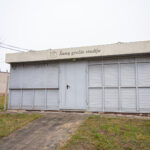 Prie užrakinto, kurio duris jau aptraukė rūdys, pritvirtintas užrašas skelbia, kad čia turėtų veikti šunų grožio salonas „Lordas“.