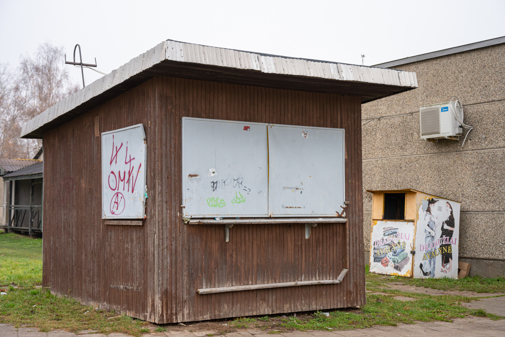 Vieni jų tušti stovi metus, kiti – net dešimtmečius. Tačiau iškabos ant tokių prekyviečių vis dar skelbia, kad jose pardavinėjami dėvėti rūbai, pieno produktai, netgi veikia šunų grožio salonas.