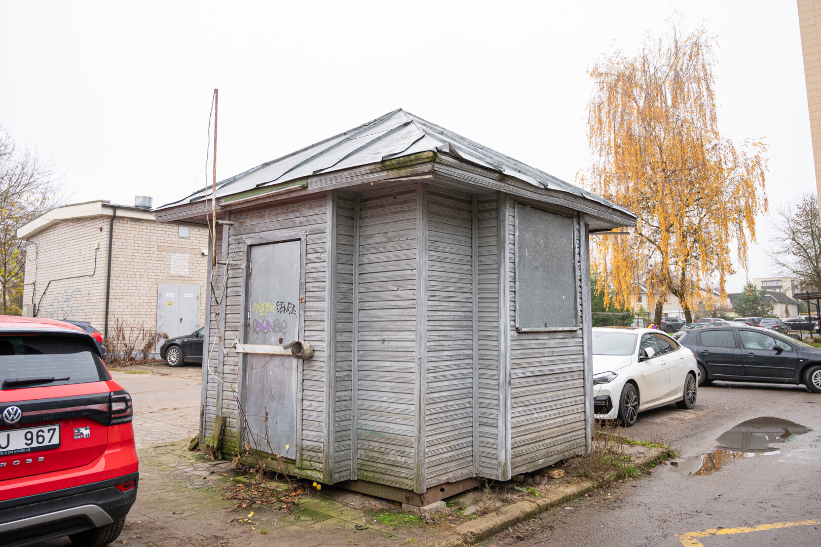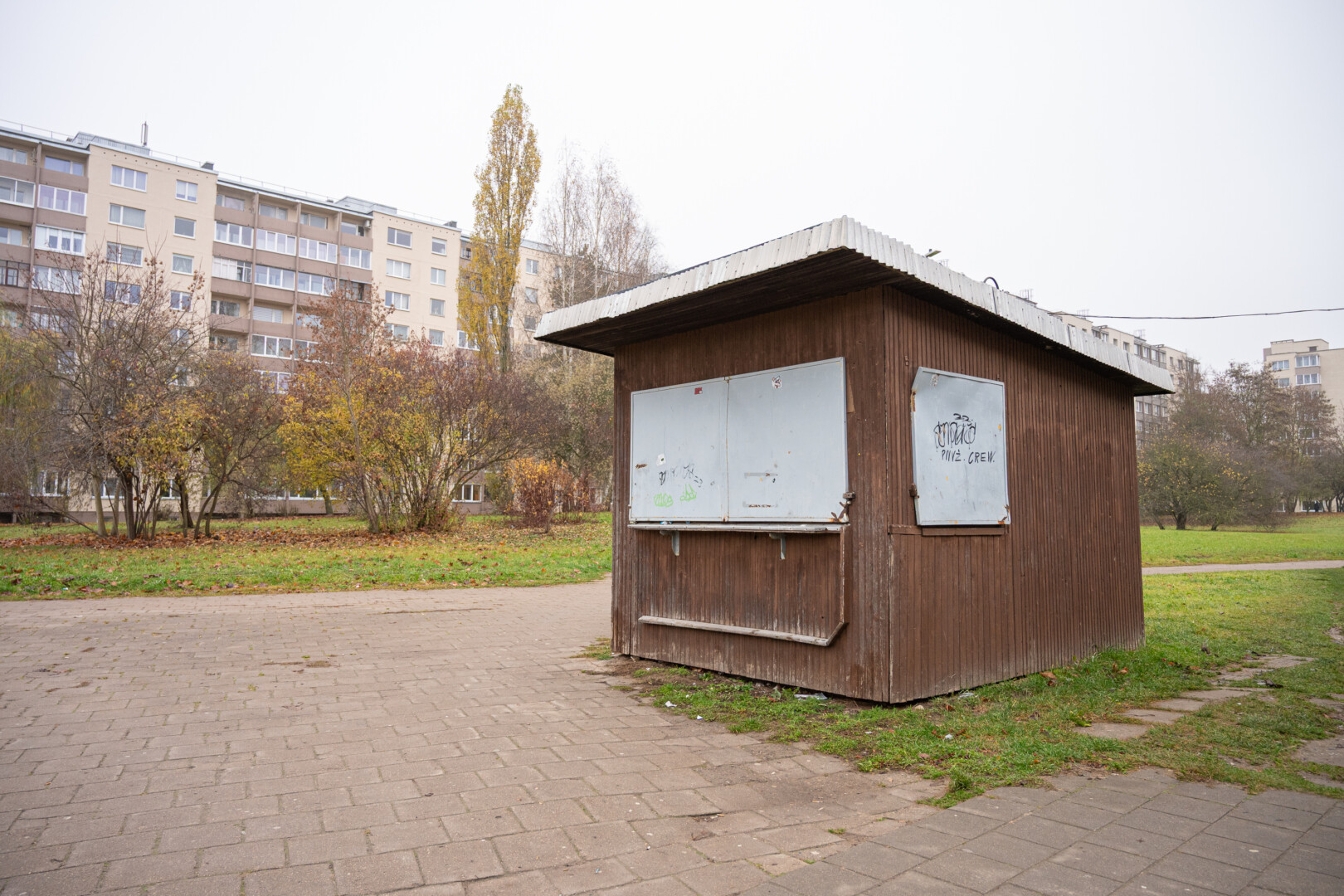 Panevėžio savivaldybė sulaukė raginimo išgabenti Statybininkų gatvėje stovintį apleistą, dažais nuterliotą medinį kioską.