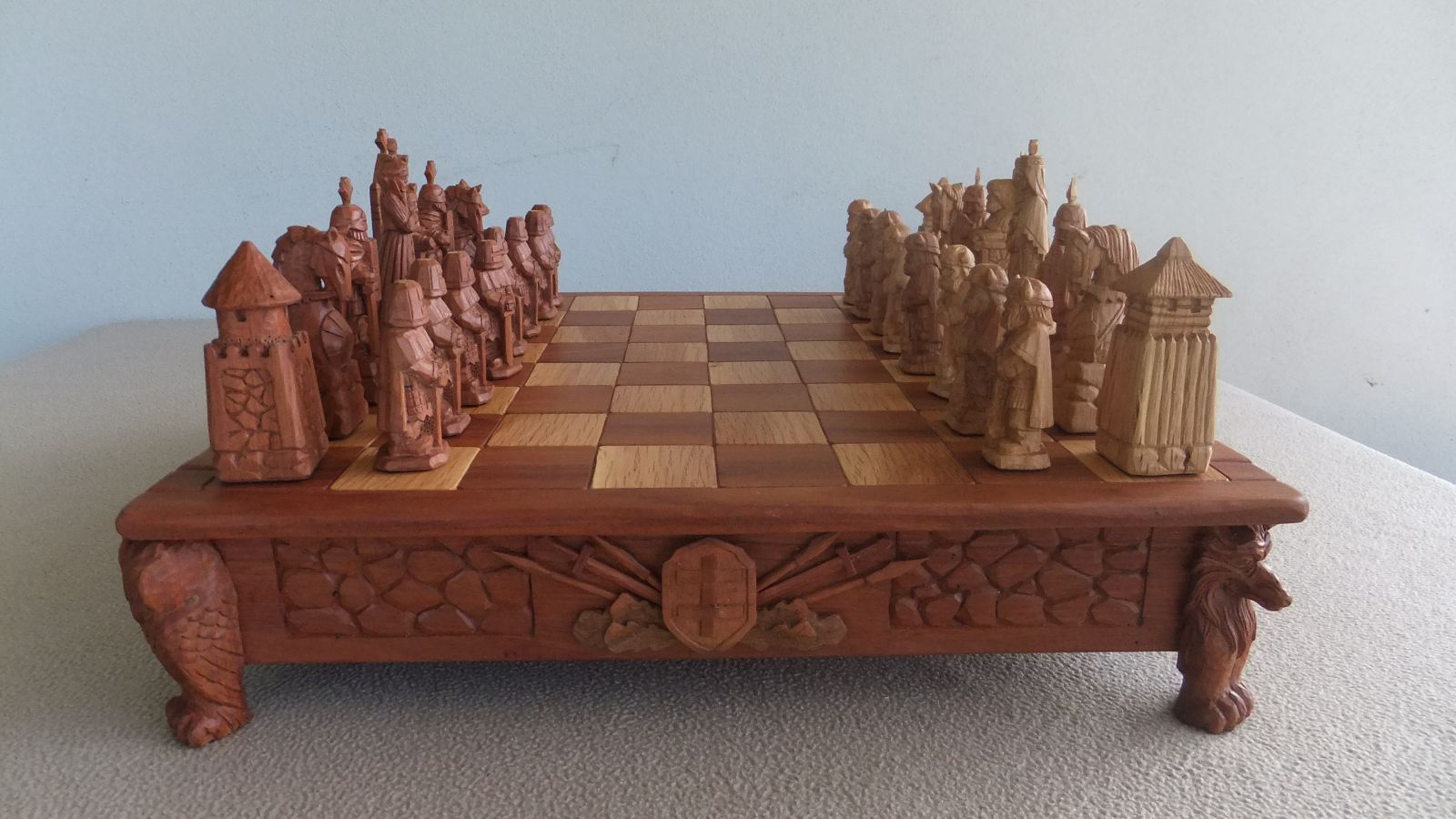 Meistras sako pirmiausia nusipiešiantis eskizą, kur kas maždaug turėtų būti. O paskui, kai paima medžio gabalą, viskas po truputį ir drožiama, dėliojama – taip ir gimsta kūriniai.