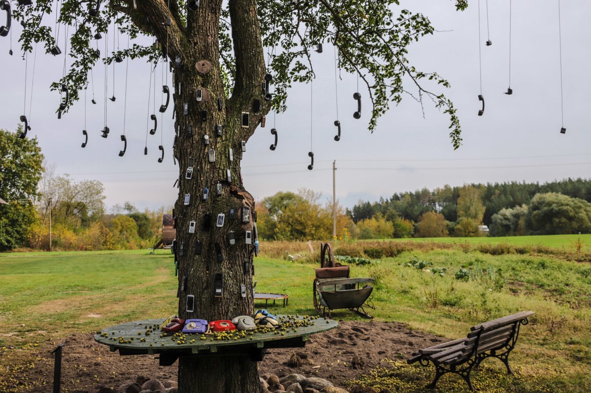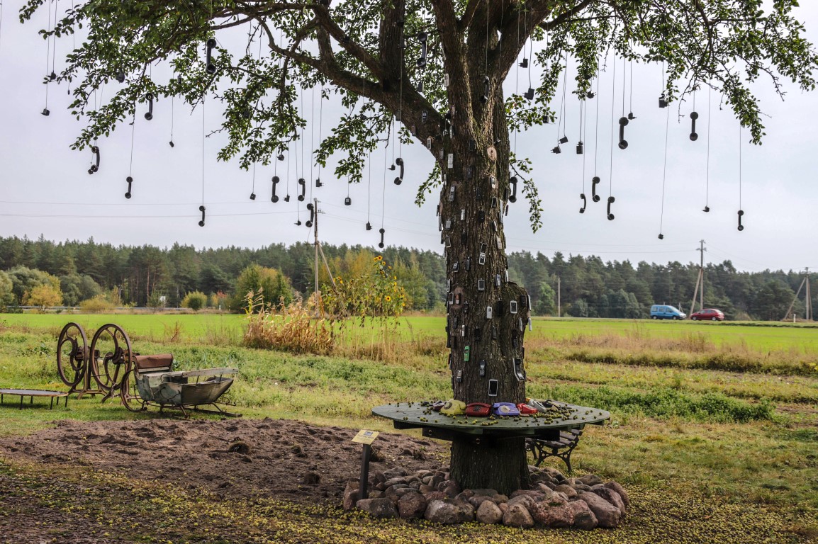 Netoli Berčiūnų žaliuojanti miškinė kriaušė veda ne tik rūgščius mažyčius vaisius. Ant jos šakų – įvairiausių telefonų kolekcija: nuo sovietmečiu naudotų stacionarių iki įmantrių išmaniųjų. Šios idėjos sumanytojas verslininkas Gediminas Ambraška šypsosi, kad telefonų medis – puiki edukacija ir jaunajai kartai, kuri ne tik neįsivaizduoja, kaip reikėtų skambinti sukant telefono ratuką, bet tikriausiai nebemokėtų naudotis ir mygtukiniais mobiliaisiais.