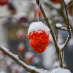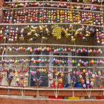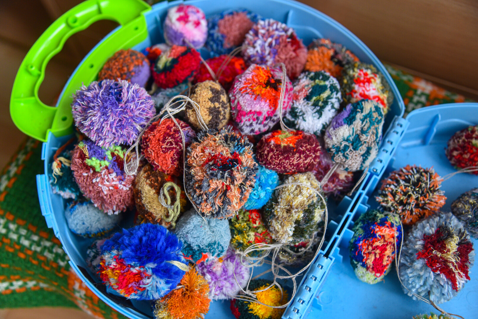 Šio nebemažo krūmo žiedai – net 1066 iš margaspalvių siūlų V. Juškienės per penkerius metus kruopščiai susukti margučiai.