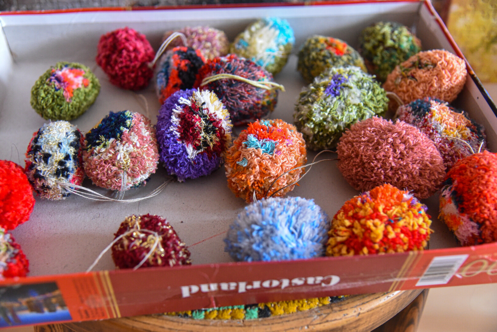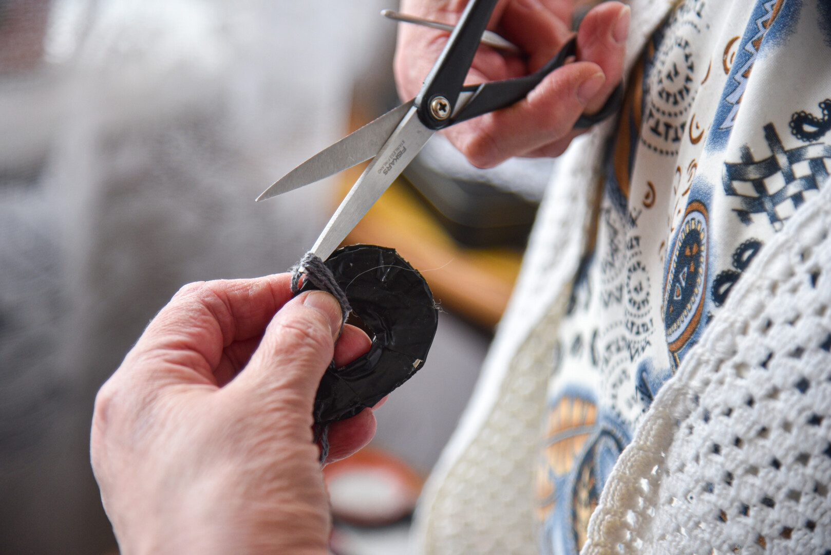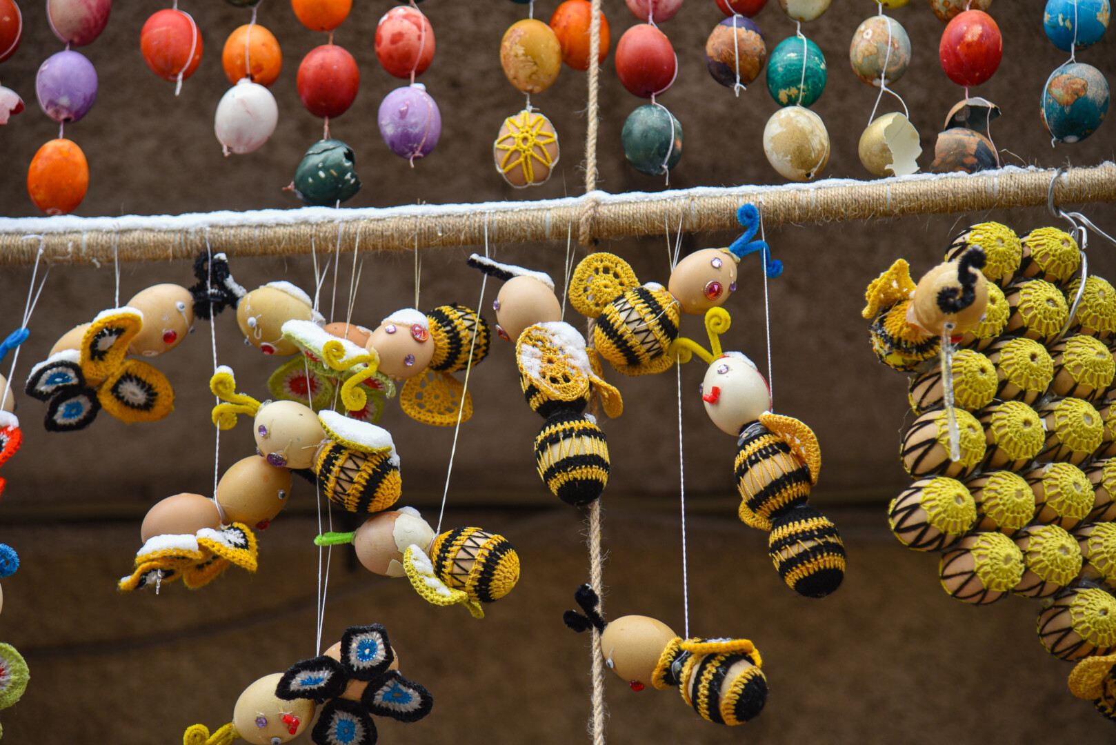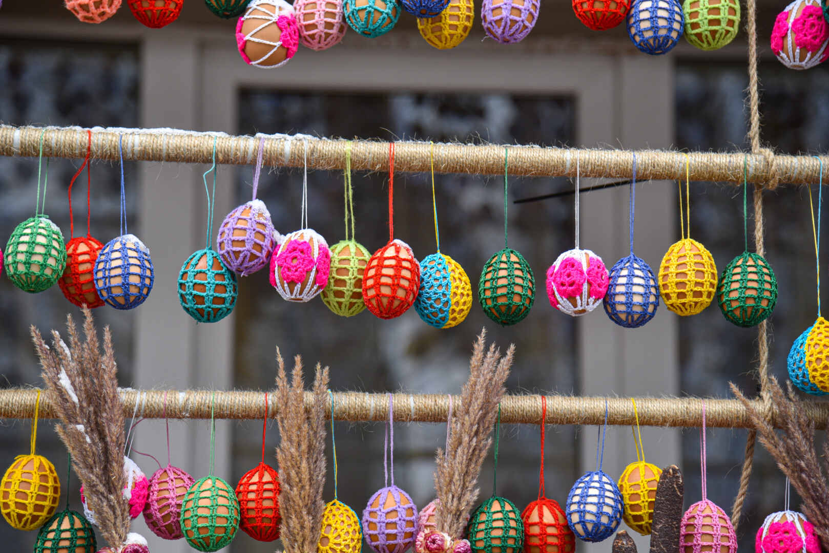 Įvairiausiais raštais išmargintų velykinių puošmenų ir vienoje, ir kitoje vietoje sukabinta tūkstančiai. O jas sukūrė dvi viena kitos nė nepažįstančios auksarankės.