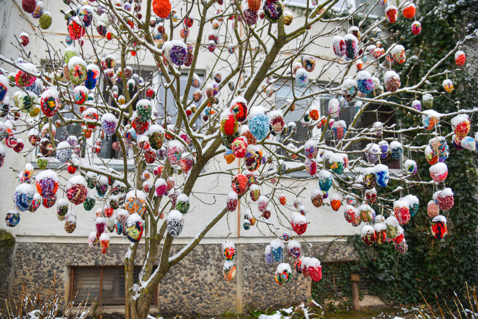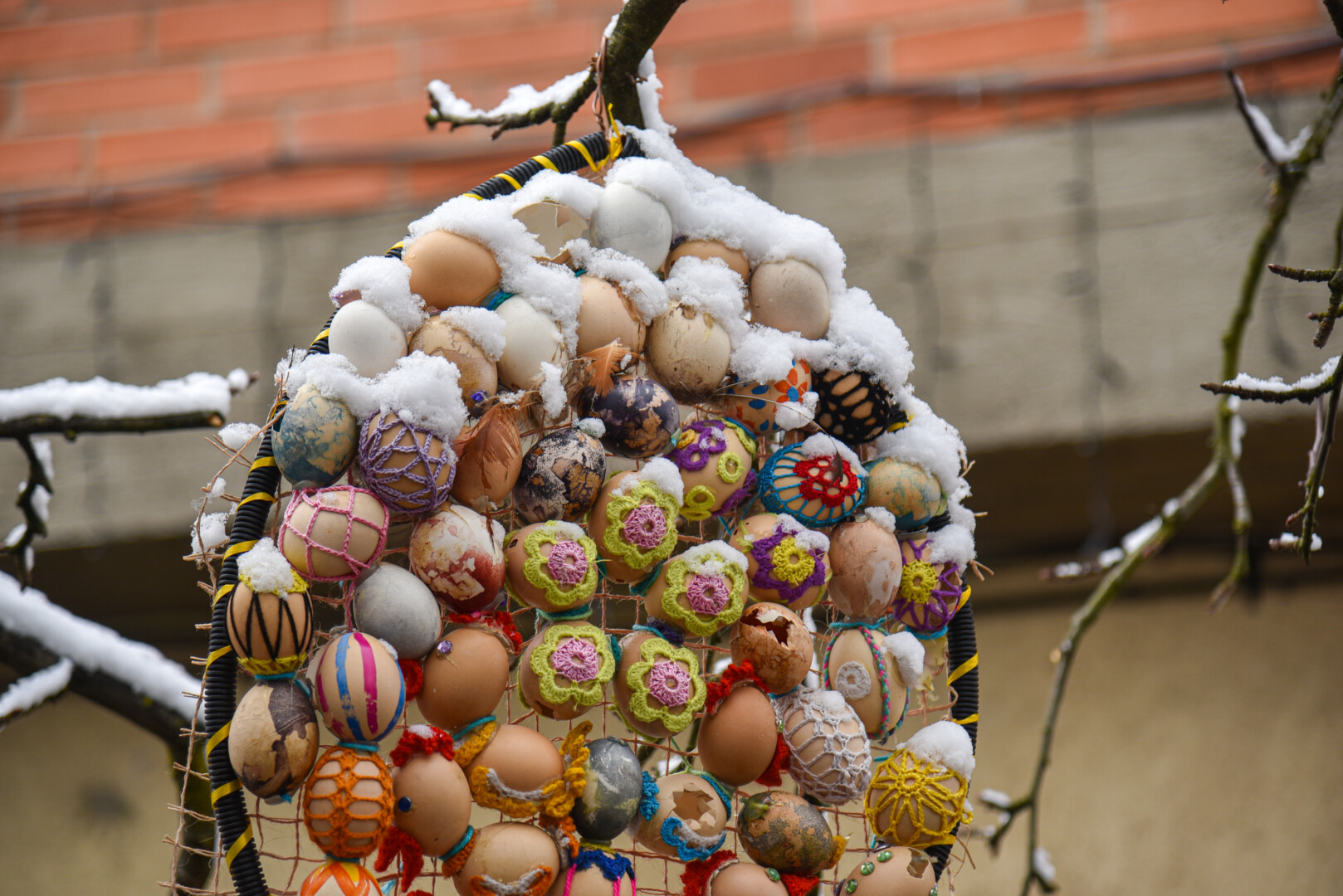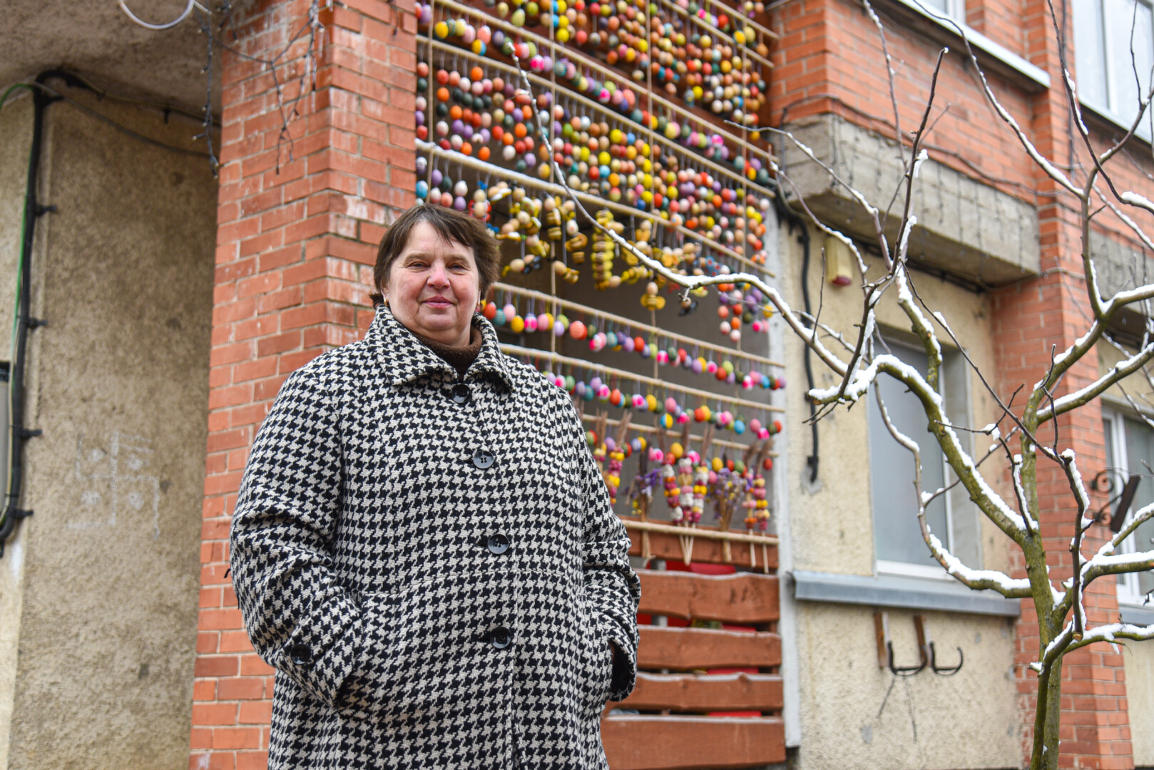 O Aldona Ladavičienė savo namų kiemą Velykoms puošia tikrais vištų kiaušiniais.