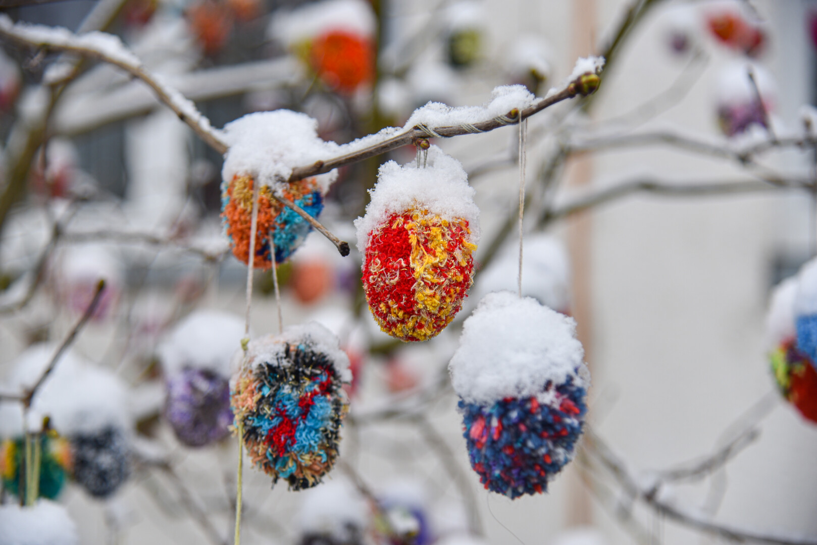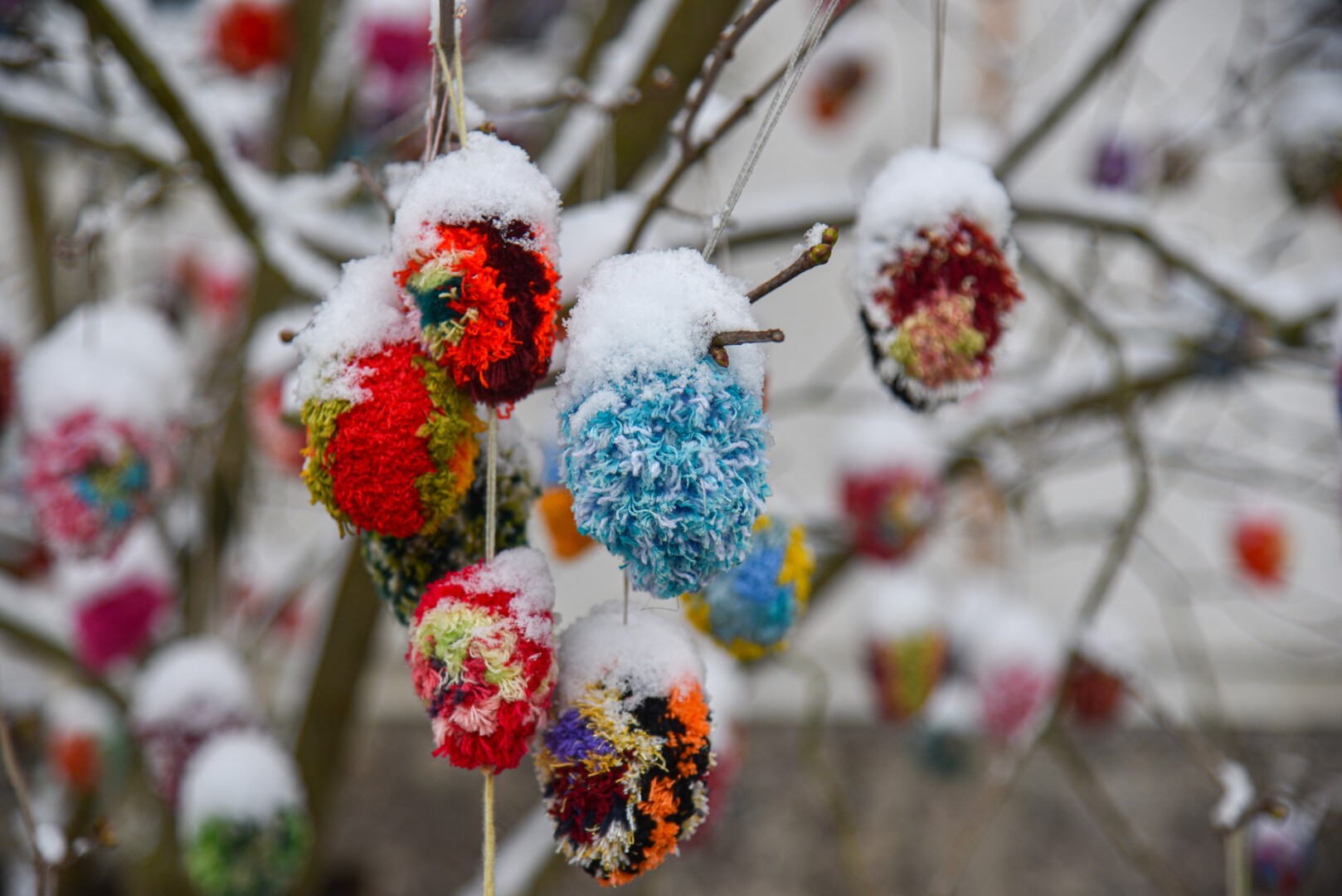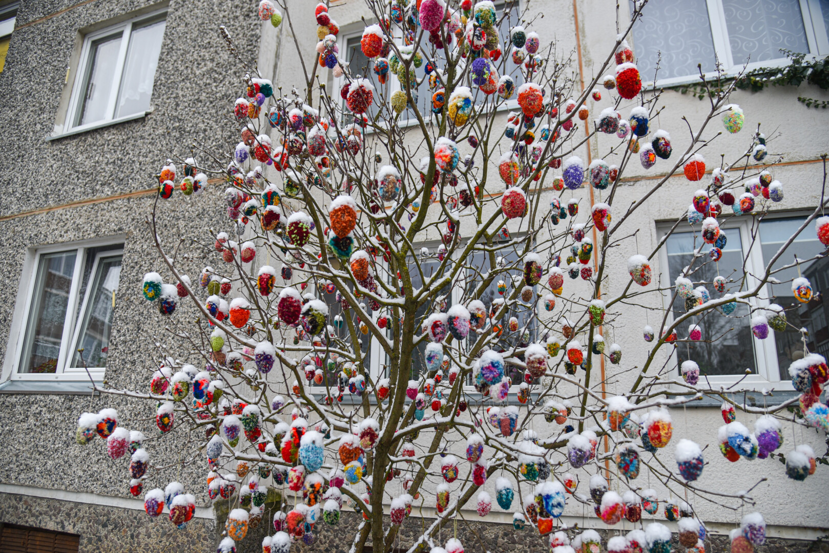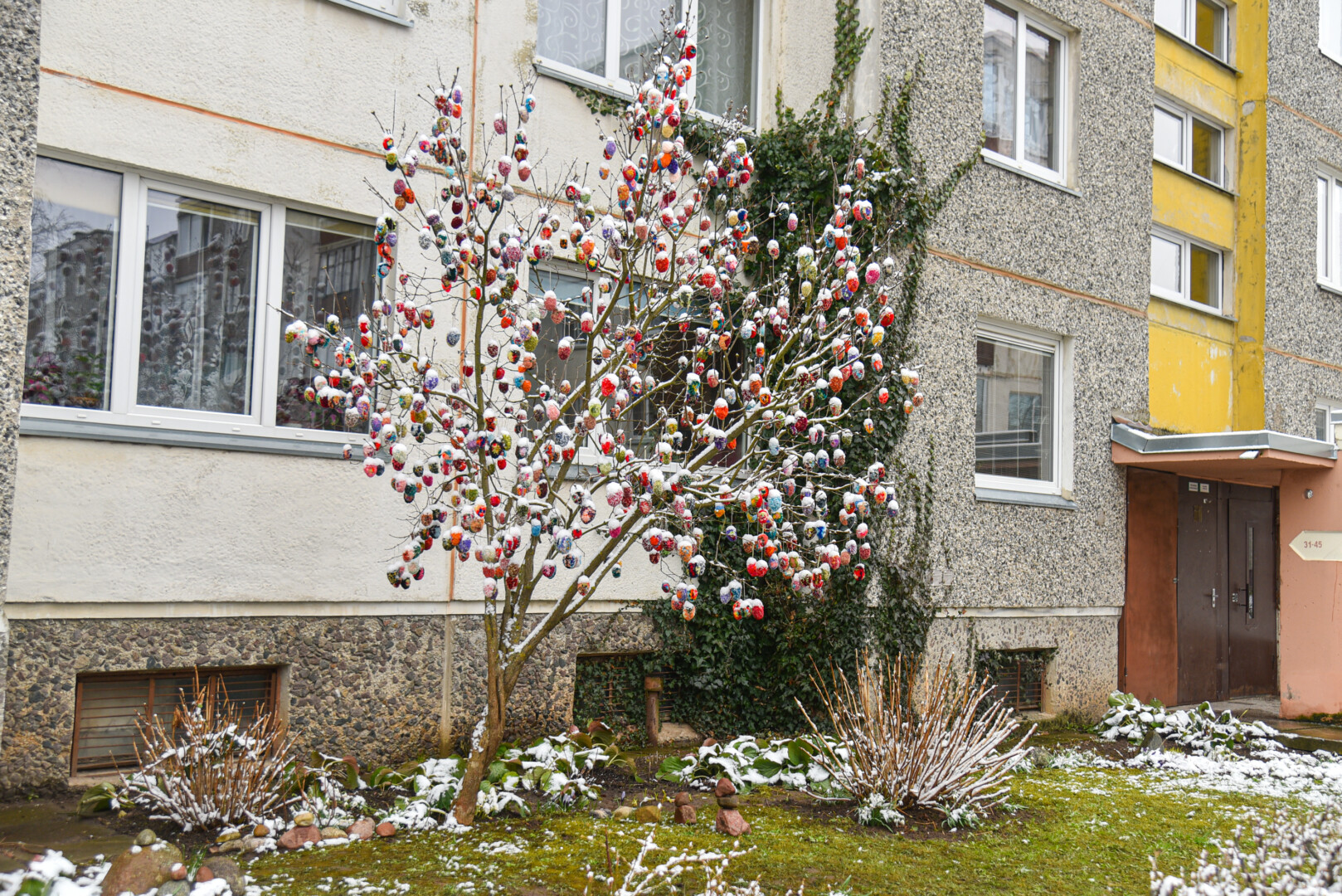 Nebe pirmus metus panevėžiečiai plūsta prie daugiabučio Kniaudiškių gatvėje ir individualaus mūrinuko Vydūno gatvėje pasigrožėti šventinėmis puošmenomis – margučiais išpuoštais medžiais.