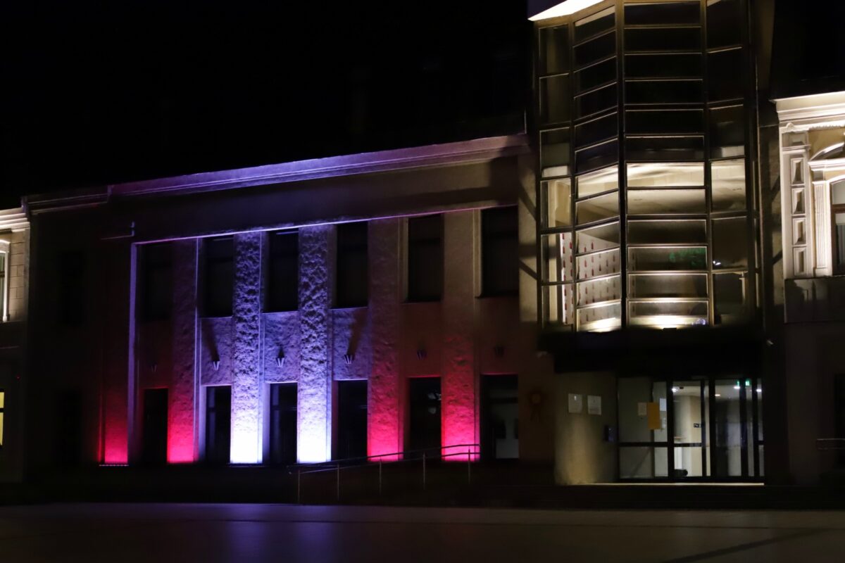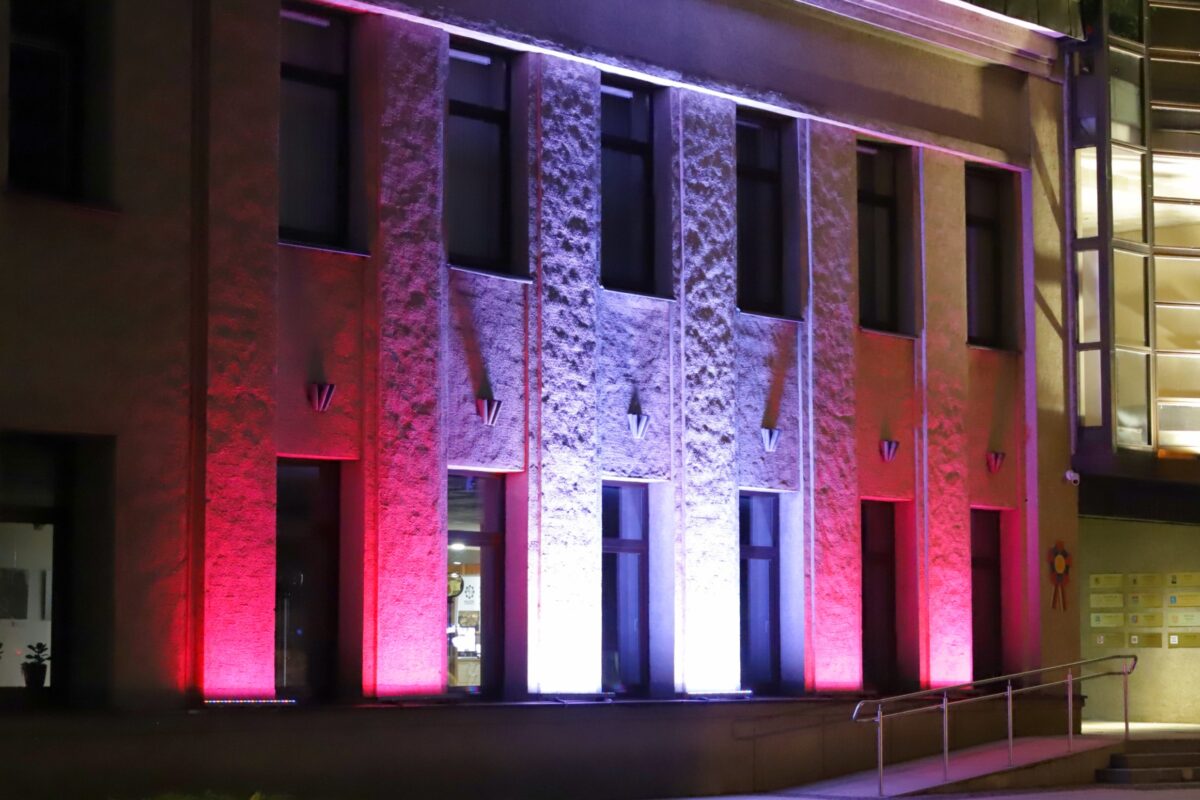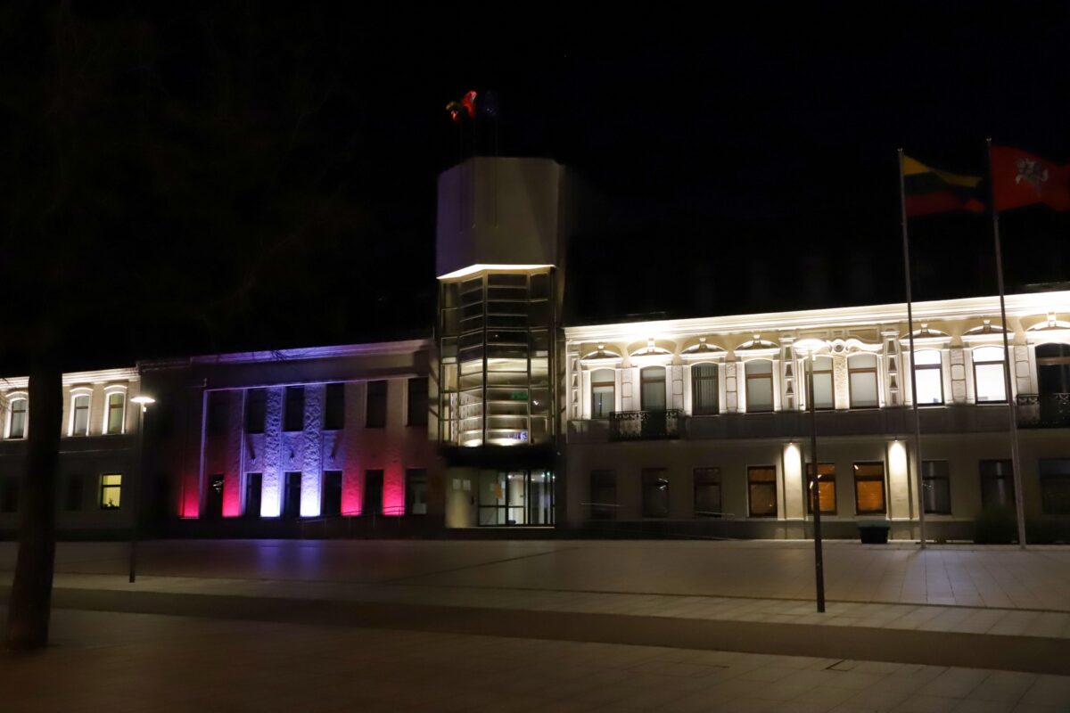 Latvijai minint nepriklausomybės paskelbimo 103–iąsias metines, ketvirtadienio vakarą Panevėžio miesto savivaldybės pastatas apšviestas simboliška instaliacija – Latvijos nacionalinės vėliavos spalvomis.