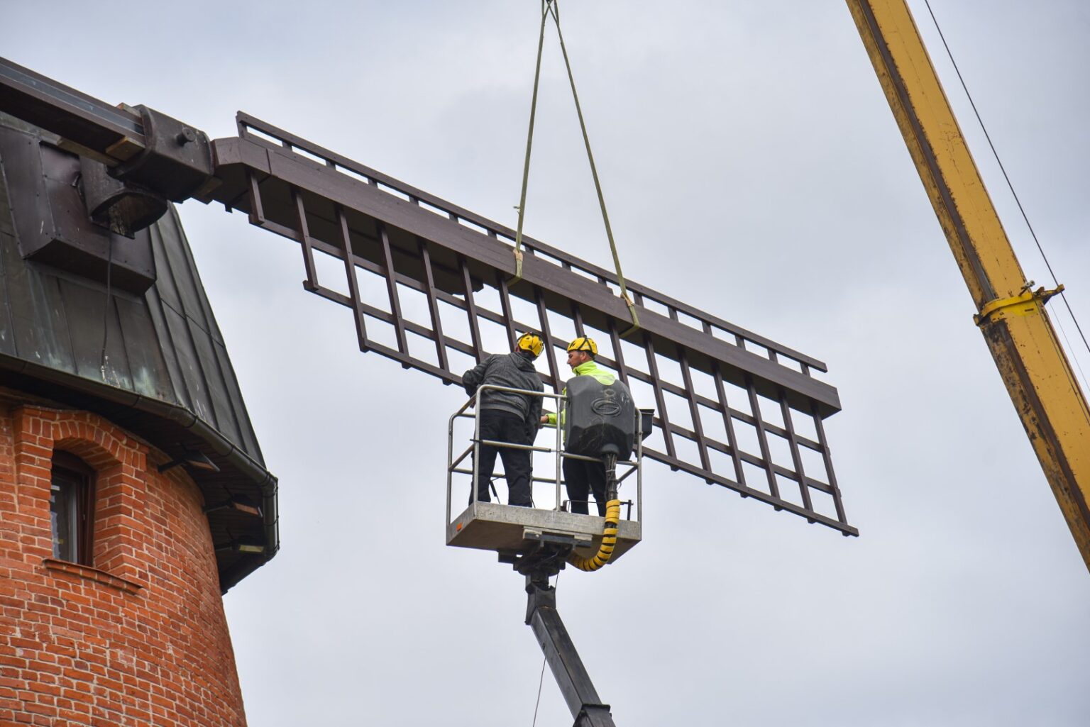 Naujiems, kone aštuonių metrų ilgio sparnams montuoti malūno šeimininkas teigia neatsitiktinai pasirinkęs rugsėjo 1-ąją.