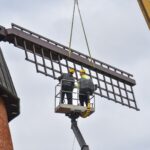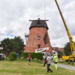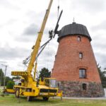 Vienas iš Panevėžio simbolių – malūnas Ramygalos gatvėje keičiasi: rugsėjo 1-ąją pradėti montuoti kone aštuonių metrų ilgio sparnai. P. Židonio nuotr.