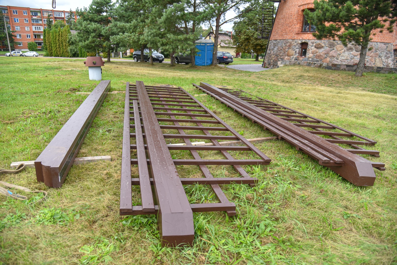 Naujiems, kone aštuonių metrų ilgio sparnams montuoti malūno šeimininkas teigia neatsitiktinai pasirinkęs rugsėjo 1-ąją.