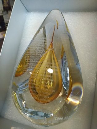 Iš renginio garbės svečiai išėjo nešini unikalia Seimo dovana už indėlį į valstybės laisvę. Meninio stiklo skulptūras R. Kriukas kūrė ištisus metus.