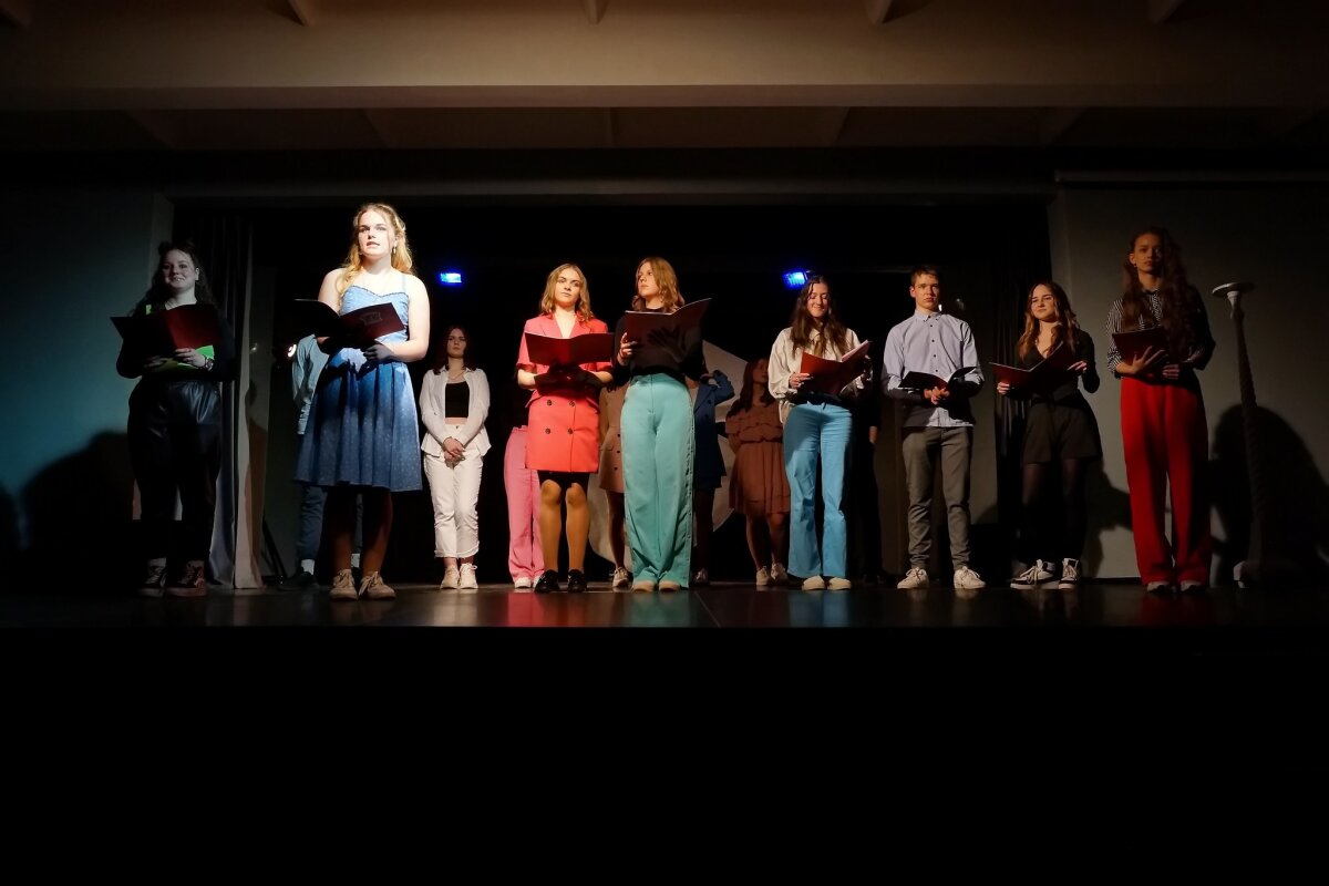 Po sveikinimo žodžių renginio svečiai dalyvavo teatro „Menas“ kūrybinės grupės edukacinėje programoje „Nuo pjesės iki spektaklio.“