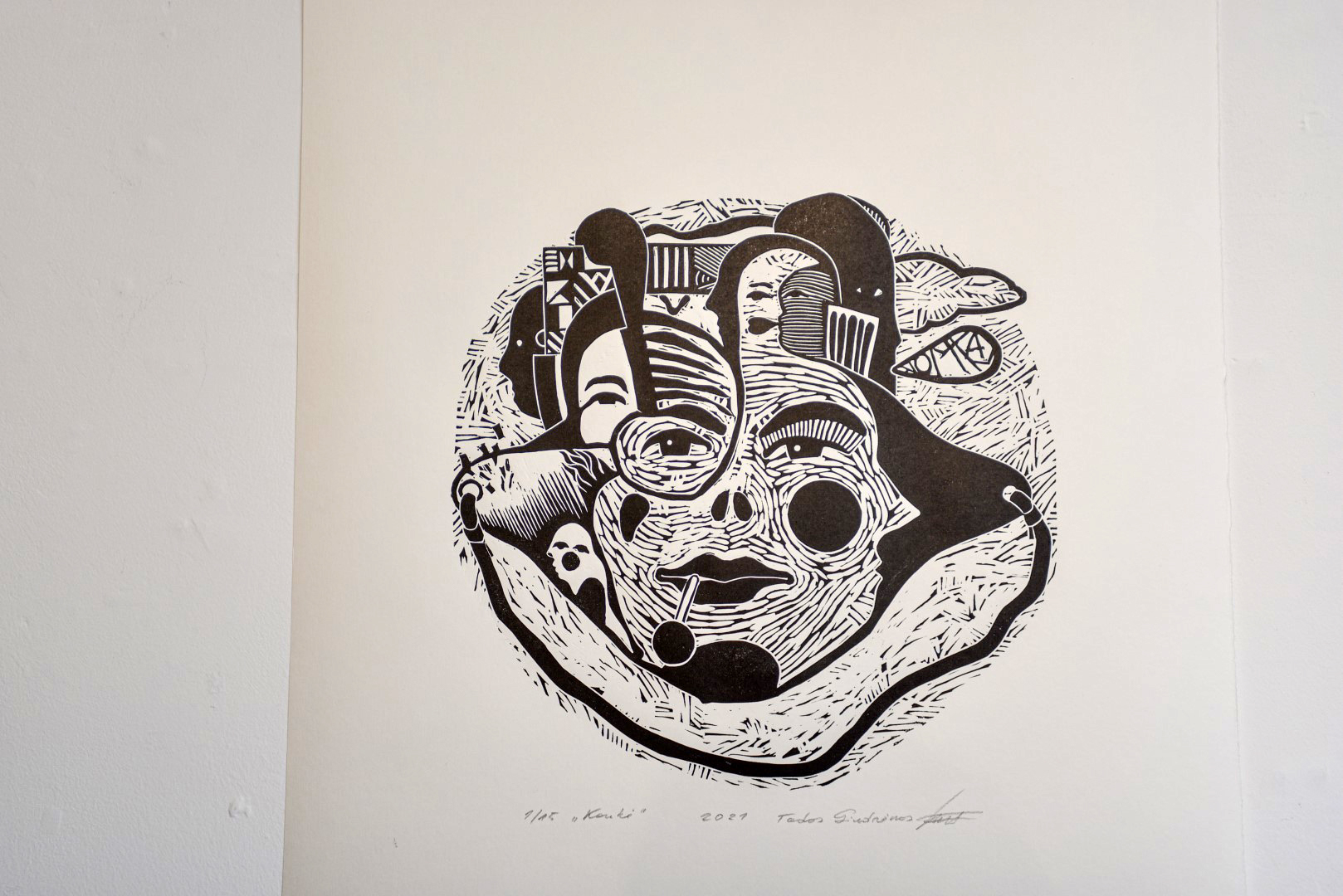 „Mano darbai labai plakatiški, o linoraižinys toks ir yra. Kurdamas turi būti labai stiprus, bet kartu subtiliai pajusti, kad linija pulsuotų. Vienaip rėži – ji bus vientisa, atleidi – tampa pulsuojančia. Visa tai priklauso nuo patirties“, – sako Tadas, linoraižinius kuriantis maždaug du dešimtmečius.