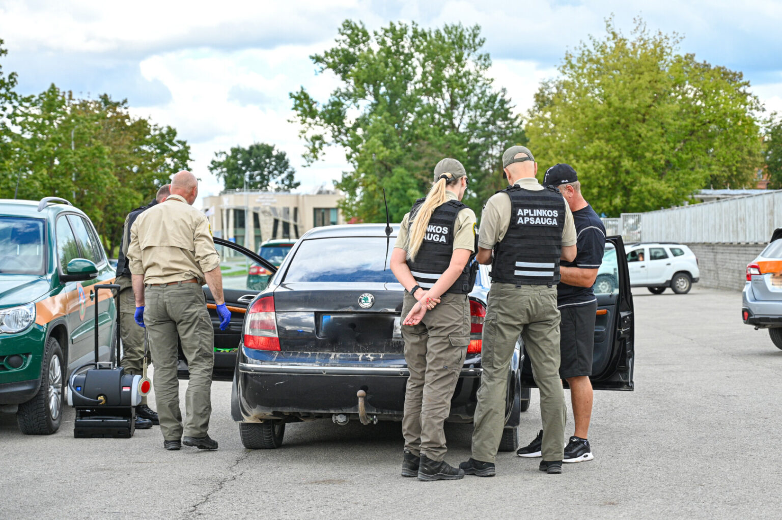 Departamento pareigūnai sustabdę transporto priemonę dėl taršos kontrolės netikrins joje esančių vairuotojo daiktų. Tik turint pagrįstų įtarimų, kad tikrinamame automobilyje esantys daiktai yra susiję su nelegalia medžiokle, žvejyba ir pan., pareigūnai turi teisę daiktus patikrinti.